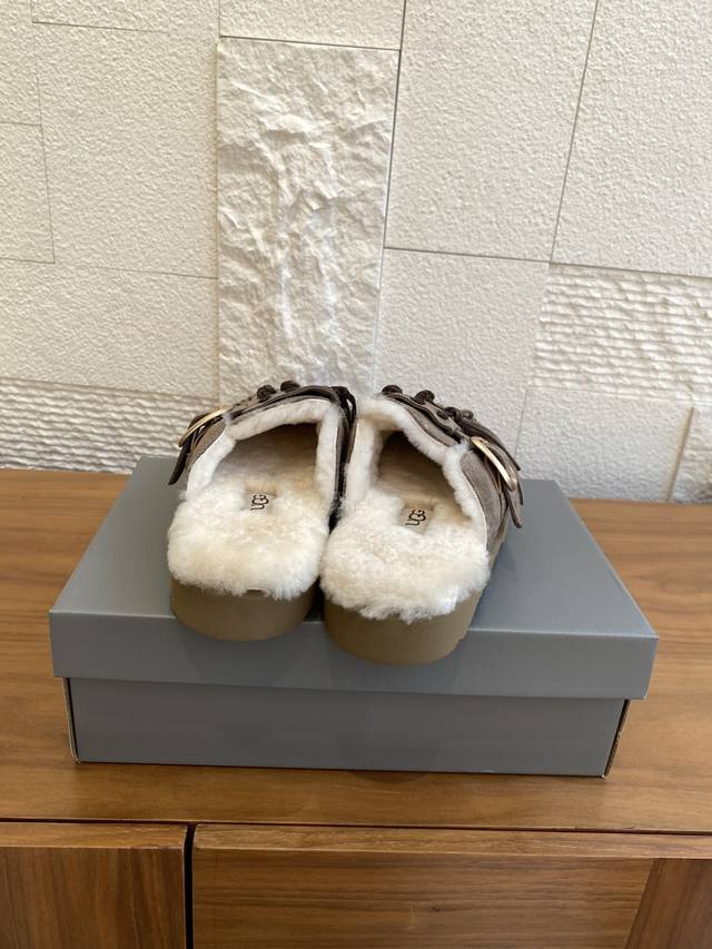 Top Version: Ugg 2025 Autumn/Winter New Tassel Buckle Thick Sole Slip-on Furry S