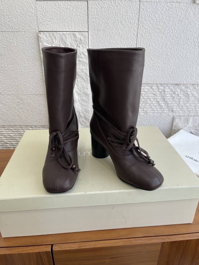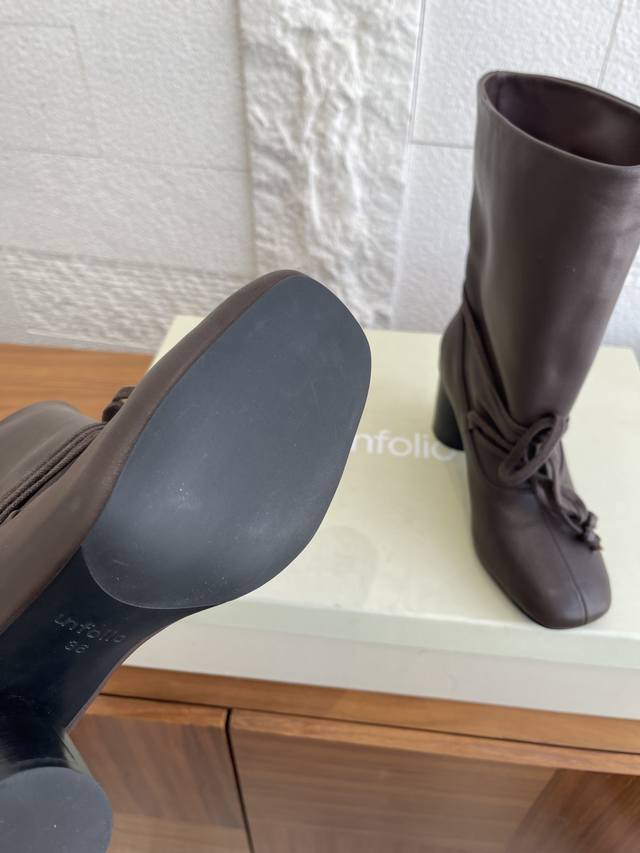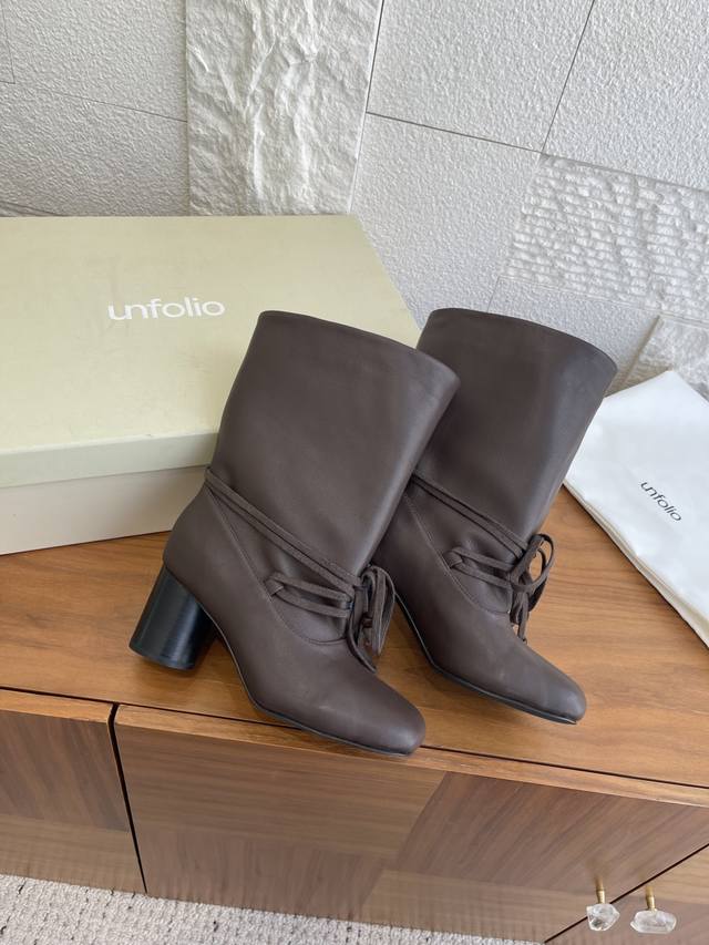 Top Version: DDD Unfolio 2025 Autumn/Winter New Style Yu Kewei's Retro Strappy Chunky Heel Ankle Boots DDD Unfolio's Elliot lace-up chunky heel ankle boots feature an upper made of ultra-soft cowhide, with a delicate texture and excellent elasticity, conforming naturally to foot movements. The lining is made of elastic Lycra plant fiber, possessing excellent elasticity, conforming to the foot's curves, and being skin-friendly and non-irritating, ensuring comfort for extended wear. The insole is made of sheepskin, providing soft support and reducing walking pressure; the 7cm golden heel height ensures a balance between aesthetics and comfort. The outsole is made of rubber, with a textured design to enhance grip, adapt to everyday ground conditions, and improve walking stability. DDD Material: Imported cowhide suede DDD Lining: Imported sheepskin DDD Outsole: Original molded outsole DDD Heel height: 7cm DDD Size: 35-41 40 41 Custom orders are non-refundable DDD