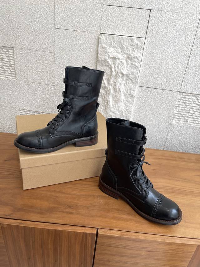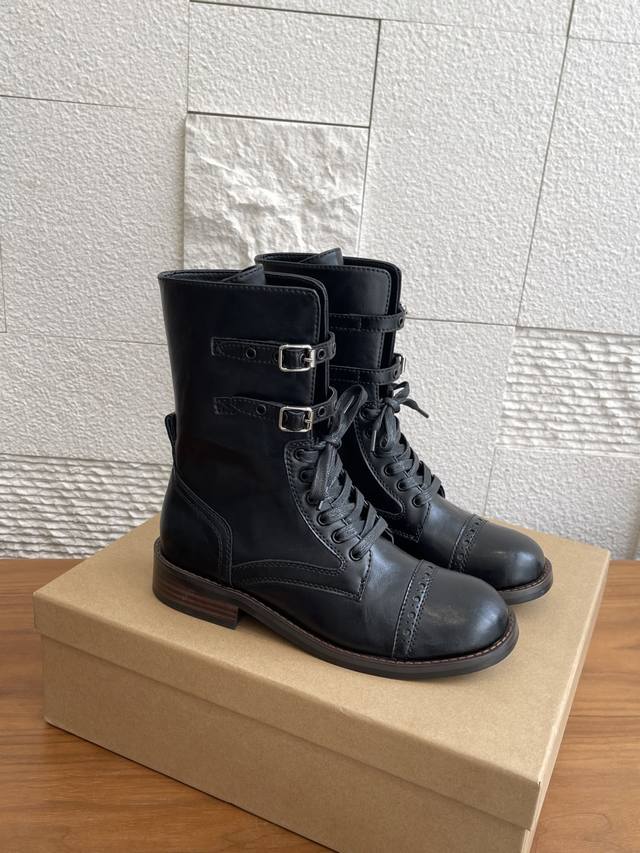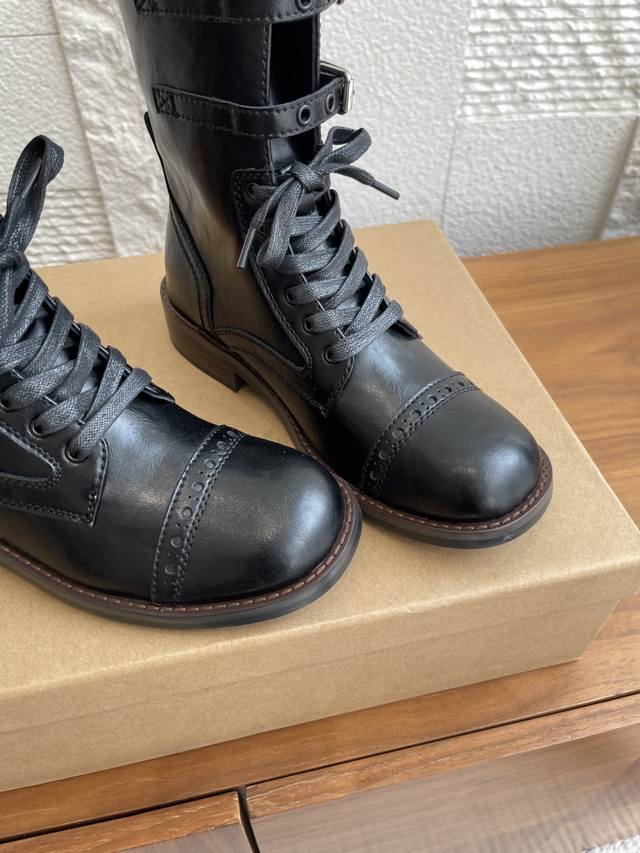 Unfolio 2025 Early Autumn New Eloise Metal Buckle Classic Retro Lace-up Mid-calf Boots. The