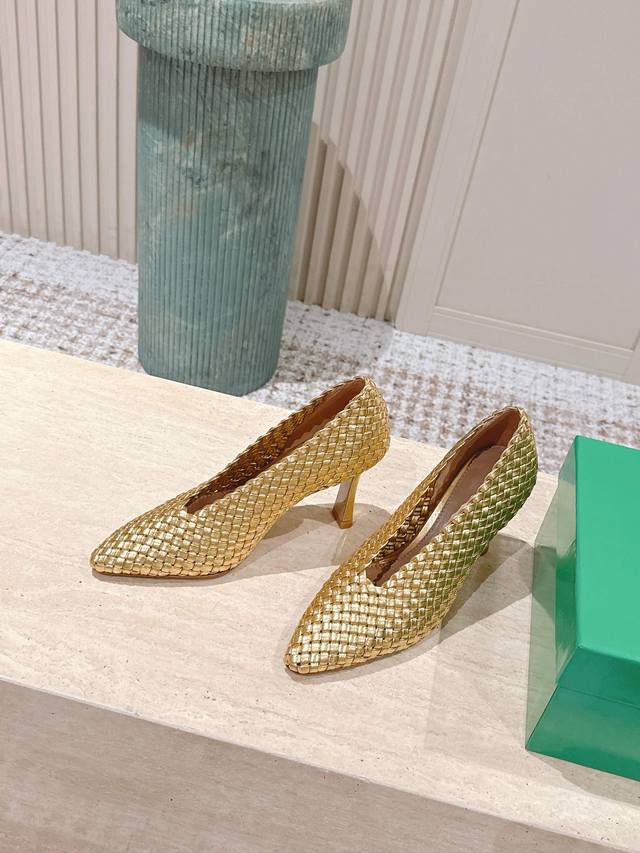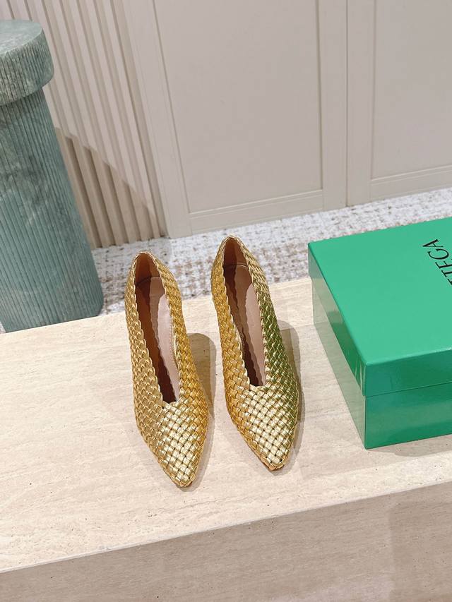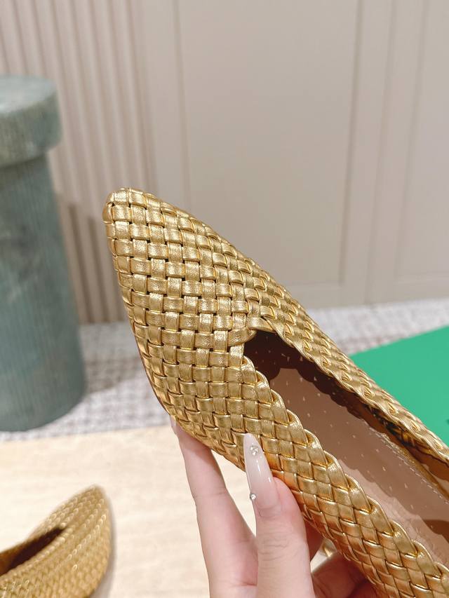 Bv Sofia flat-soled hand-woven one-piece woven series single shoes 5 mm woven single shoes genuine leather hand-woven