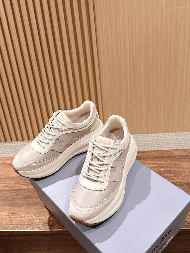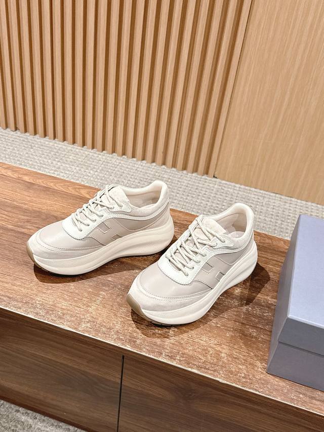 Top version#Hauge's new casual thick-soled sneakers have a user-friendly 7.5cm heel height. Made of nappa leather and suede leather, the style is dynamic, the upper has rounded lines, and the foot feel is worry-free. The memory foam insole provides cushioning and comfort. The design is super stylish, making you look taller and versatile, and you won't feel tired when walking.