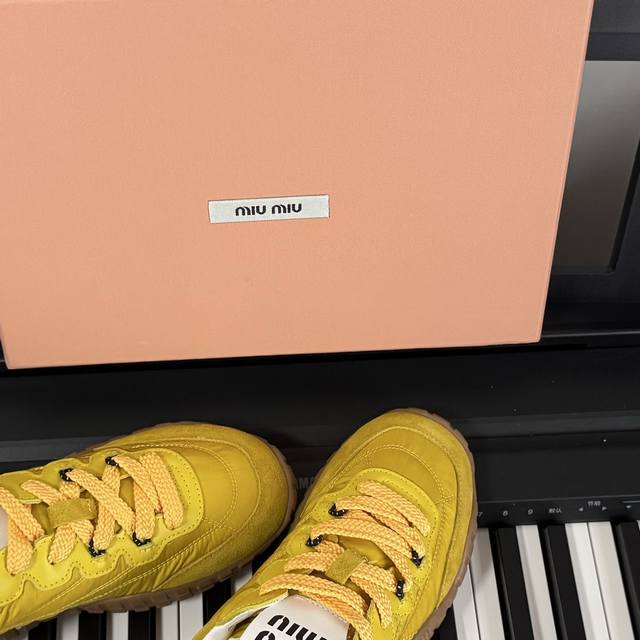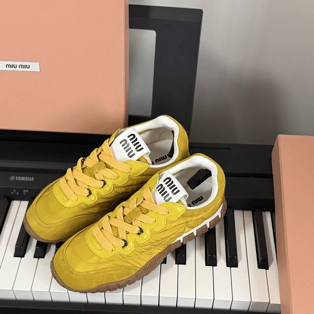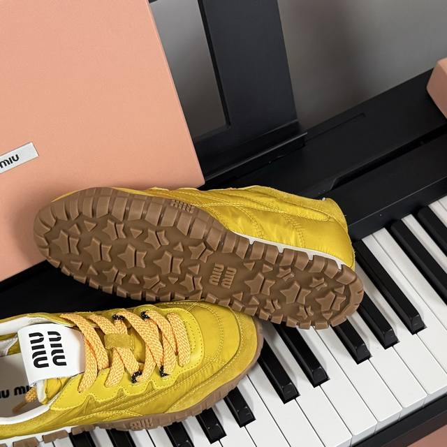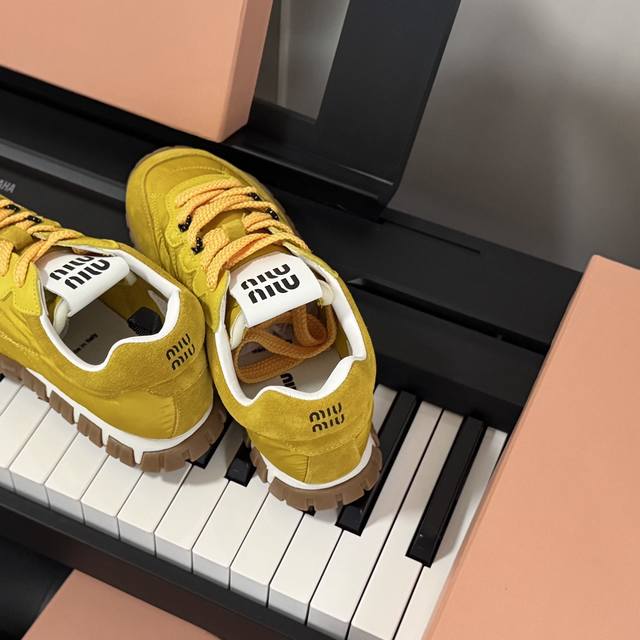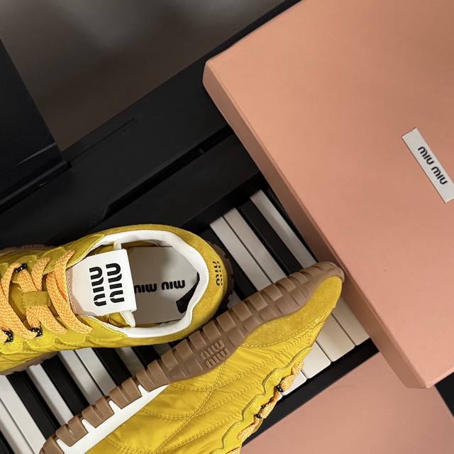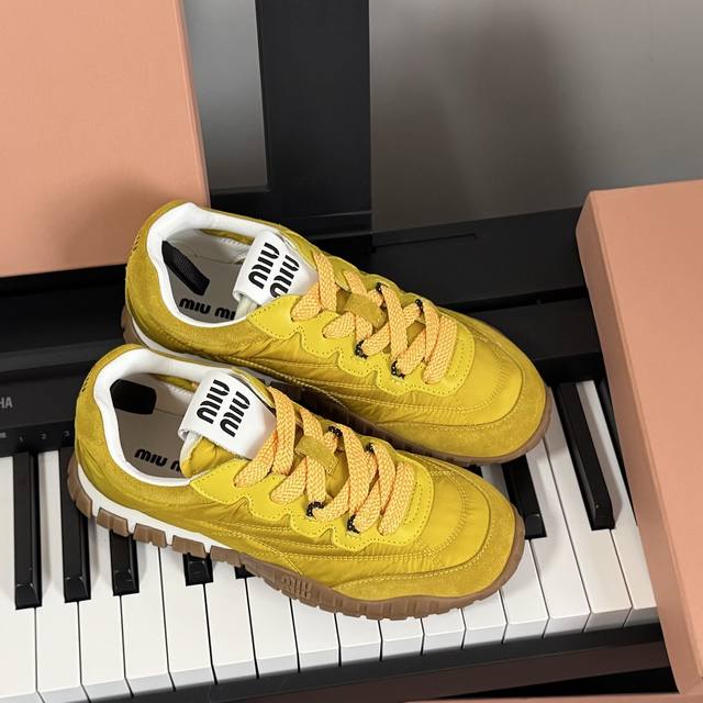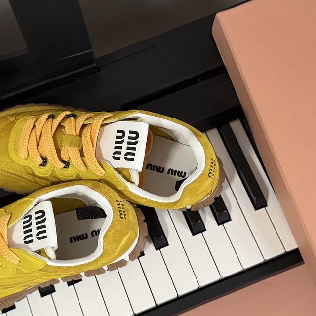 Miumiu Miu Miu 25 new biscuit shoes, Forrest Gump shoes, casual shoes, sneakers, a new spring/summer hit, avant-garde and bold design. Miu style is integrated into these thick-soled canvas sneakers with simple lines and chic logos on the tongue and back, embellished with retro thick soles. The bold and innovative design is avant-garde and comfortable to wear. Breathable and versatile colors are also available.
