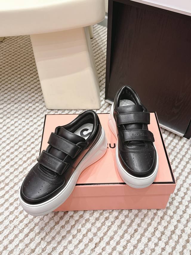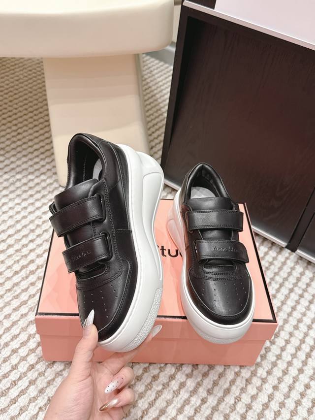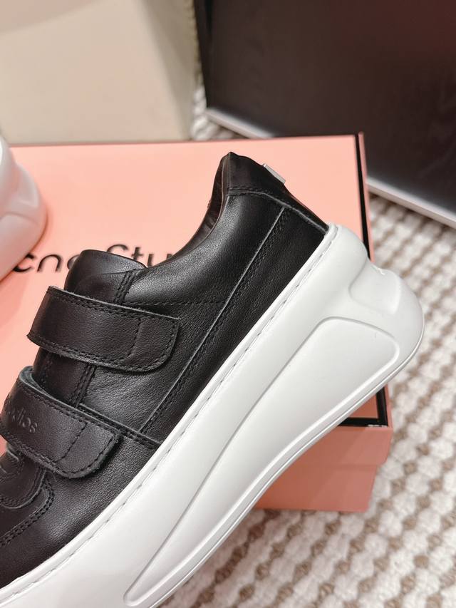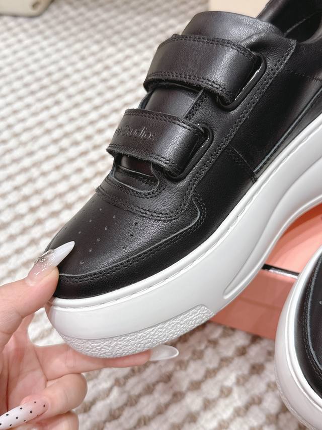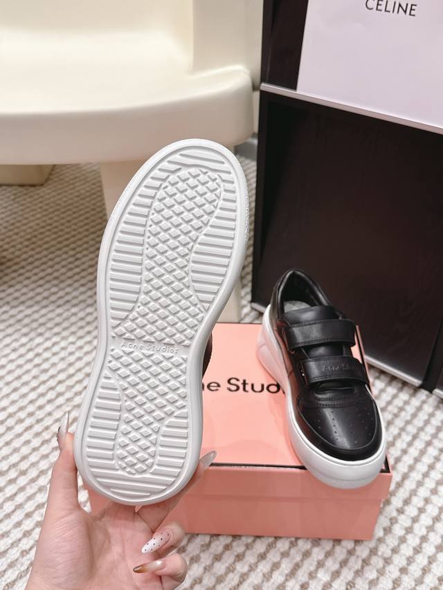 Top-quality Acne Studios 25Ss platform casual Velcro smiley face white sneakers, a rare find from Dongguan! White sneakers are undoubtedly the most popular item, capable of creating countless styles. Whether you want to look like a cool cowboy or an elegant office lady, they can meet your needs. The popularity of Acne Studios in recent years is undeniable; scarves and hoodies alike sell out in no time. It seems many are captivated by Acne's beauty