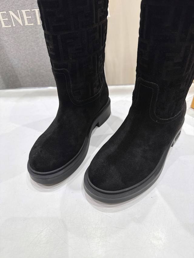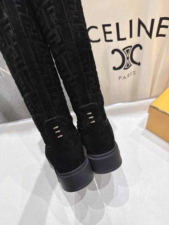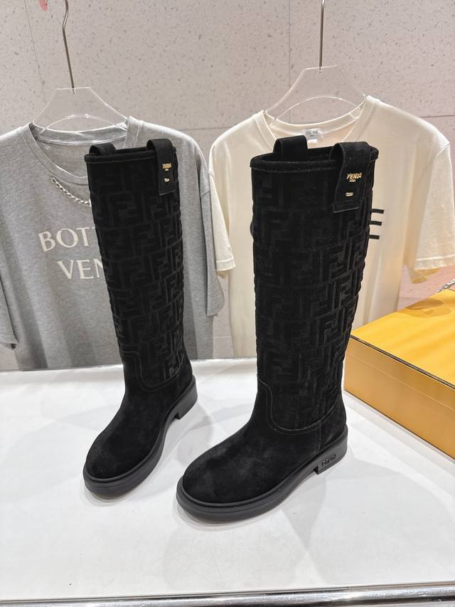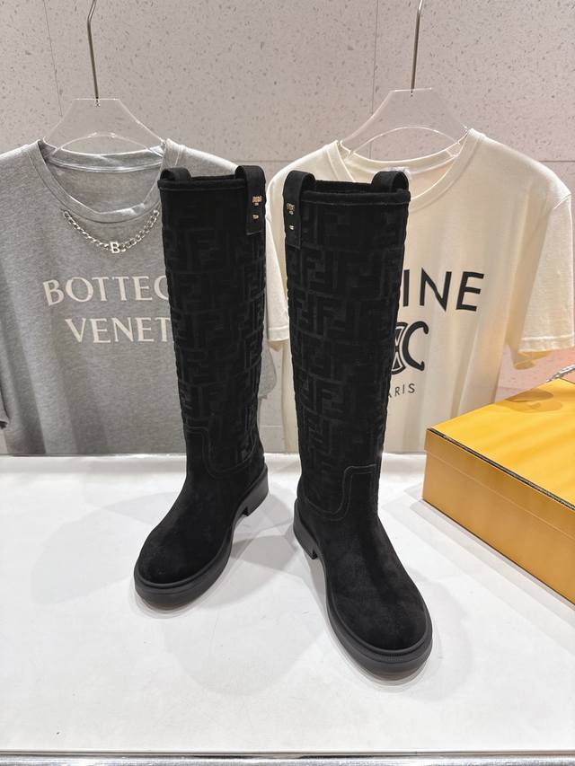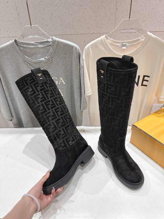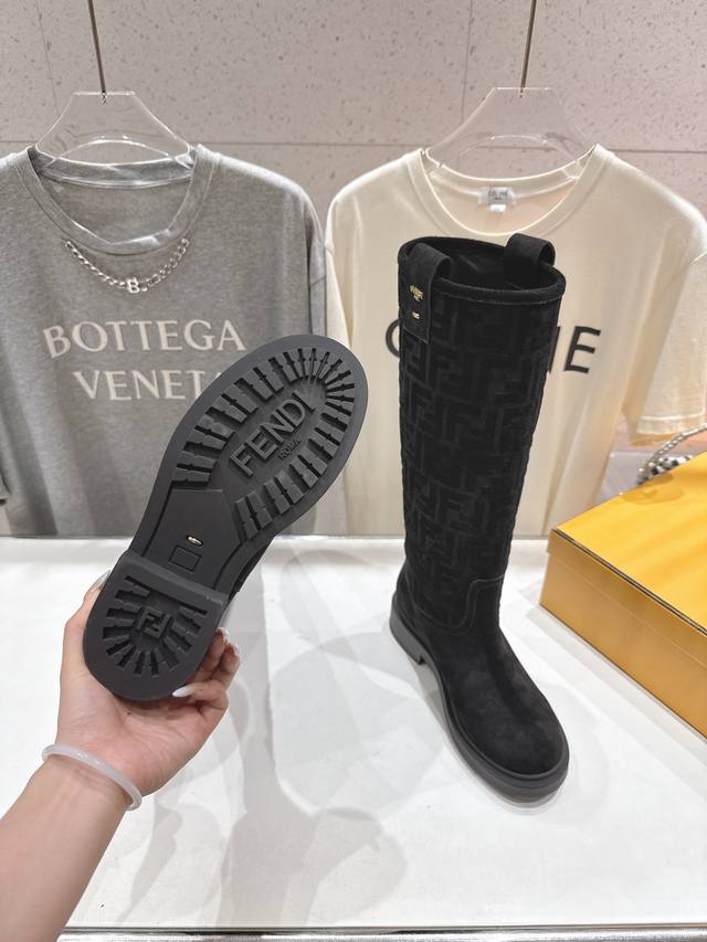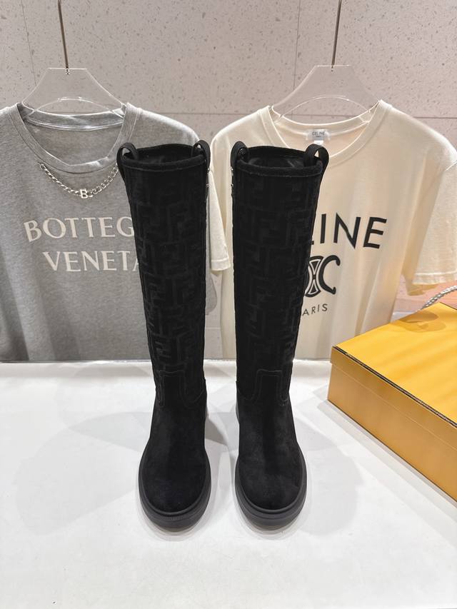 features a high-gloss cow suede embossed FF upper, cowhide lining and insole, original wear-resistant TPU outsole, 3.5cm thick.