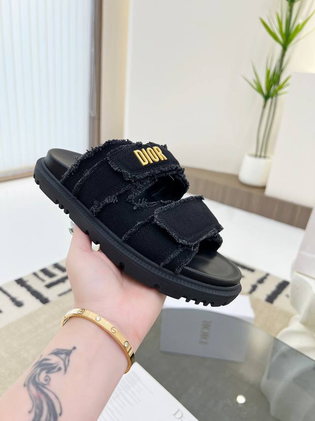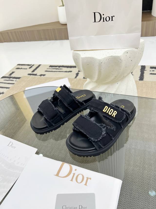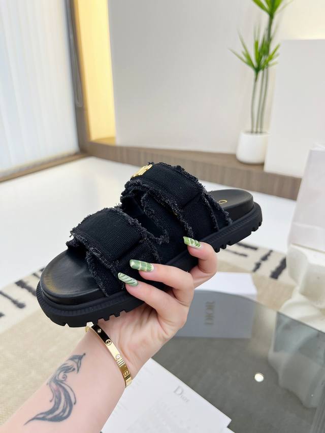 Top-tier Dior spring/summer season double C Velcro casual sandals! Summer beach sandals! Super comfortable sandals! A classic must-have! Adhere to the original 1:1 mold customization! Feel free to compare! Bring you the authentic foot feel! The first choice for high-end customers to purchase on behalf of