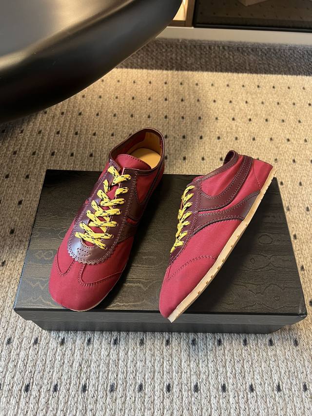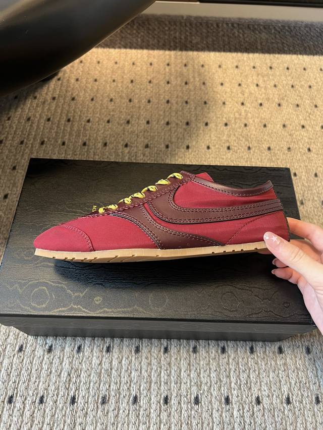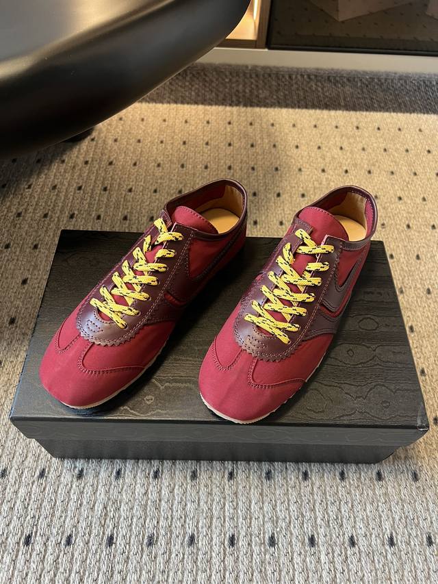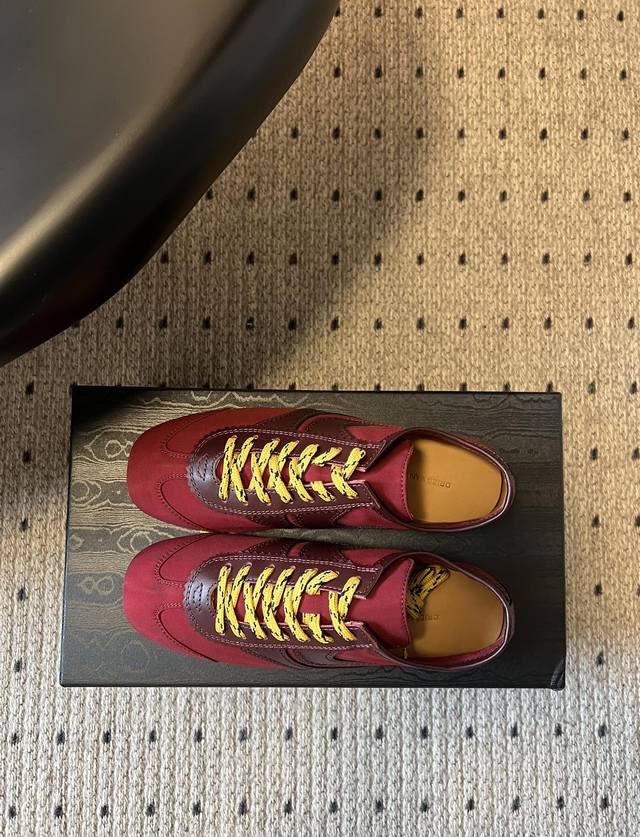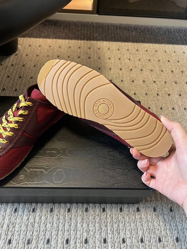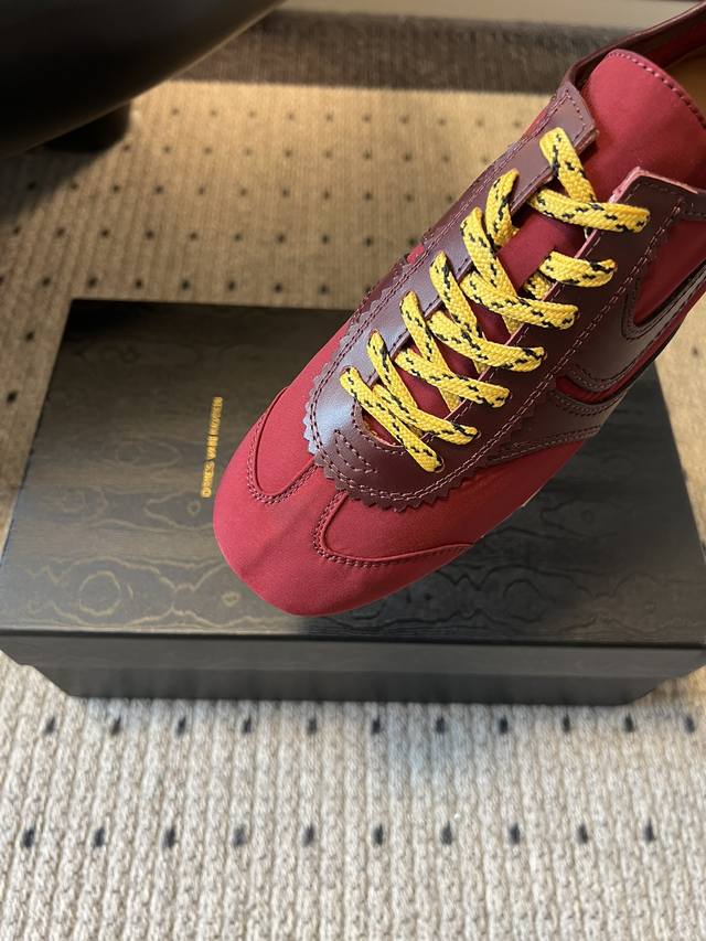 Top-tier Dries Van Note*25Ss Retro Color-Blocked German Training Shoes DDD. Based on 1970s marathon shoes, the shoe retains its retro silhouette with a round-square toe design, combining nostalgia with modern aesthetics. The upper is made of high-quality materials such as suede and Nappa leather, creating a rich textural texture. For example, the red version features a combination of suede and leather, while the gray version uses contrasting leather, enhancing visual appeal. The unique lace design uses twisted nylon rope laces, adding a retro sporty feel. Wavy scalloped edges are added to the toe and sides, softening the shoe's ruggedness and injecting a touch of femininity. The upper is a single layer of leather without an additional lining, ensuring breathability for summer wear while making the shoe lighter and conforming to the foot's curves. DDD Upper: Waterproof fabric DDD Lining: Waterproof fabric DDD Outsole: Rubber outsole DDD Height increase: 3cm DDD Size: Women's sizes 35-45, size 40.45 (custom sizes, no returns or exchanges) DDD