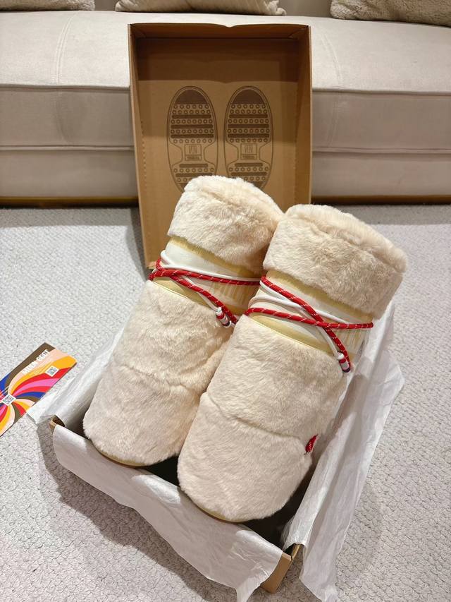 Top-tier factory version DDD Moon Boots, the darling of the ski season DDD They were already incredibly popular back in the millennium DDD Celebrities like Paris Hilton and Victoria Beckham DDD were frequently seen wearing them, and now the Y2K trend is back DDD A trendy and youthful style DDD The adorably ugly snow boots that everyone was showing off are making a comeback DDD Unisex and left/right DDD They look huge but are actually incredibly slimming when paired with yoga pants DDD Sisters planning a trip to the north should definitely grab them DDD A must-have for snow activities, they're absolutely going to be a hit DDD Upper: Woven rabbit fur DDD Lining: 100% down filling DDD Outsole: Thermoplastic rubber DDD Sizes: 35, 38, 39, 41 DDD Packaging: Original Moon Boot packaging DDD Hidden heel lift: 5cm DDD
