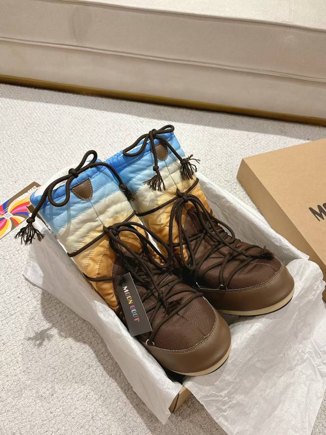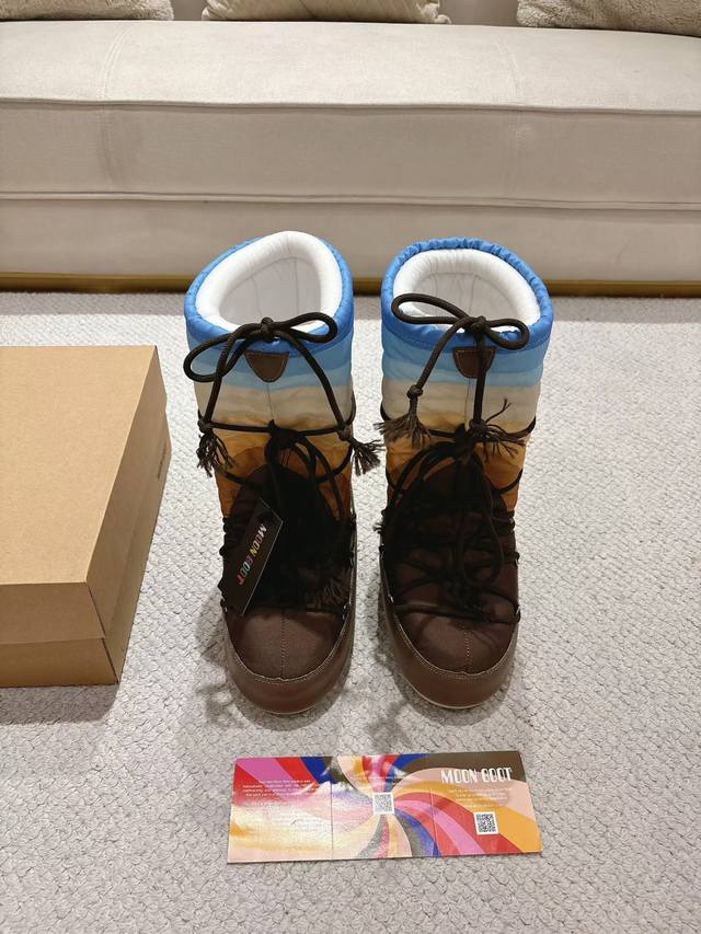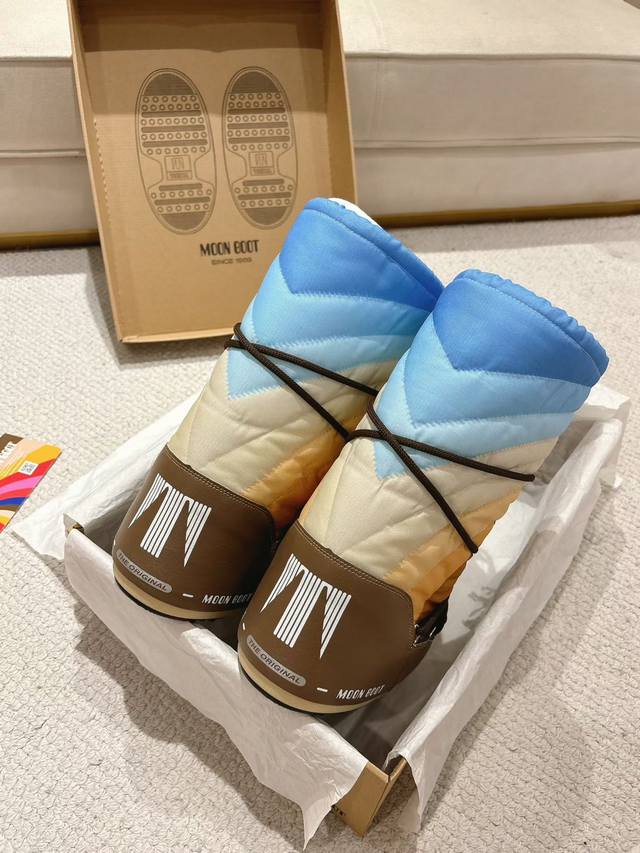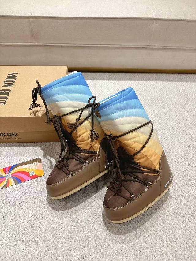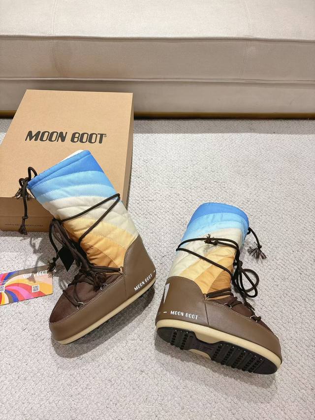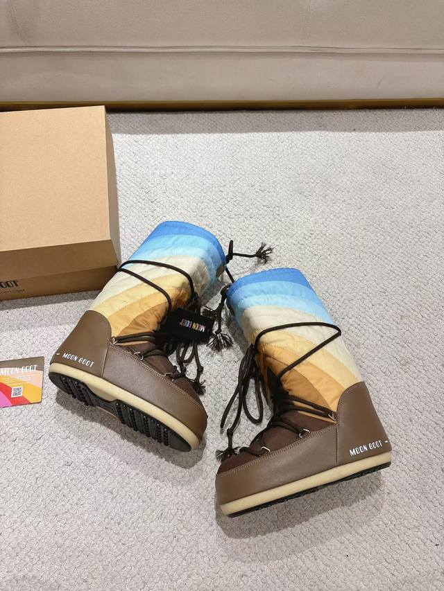 Top-tier factory version DDD Moon Boots, the darling of the ski season DDD They were already incredibly popular back in the millennium DDD Celebrities like Paris Hilton and Victoria Beckham DDD were frequently seen wearing them, and now the Y2K trend is back DDD A trendy and youthful style DDD The adorably ugly snow boots that everyone was showing off are making a comeback DDD Unisex and left/right DDD They look huge but are actually incredibly slimming when paired with yoga pants DDD Sisters planning a trip to the north should definitely grab them DDD A must-have for snow activities, they're absolutely going to be a hit DDD Upper: Rainbow DDD Lining: 100% Feather Fluid Lining DDD Outsole: Thermoplastic Rubber DDD Sizes: 35, 38, 39, 41 DDD Packaging: Original Moon Boot Packaging DDD Hidden Heel Wedge: 5cm DDD
