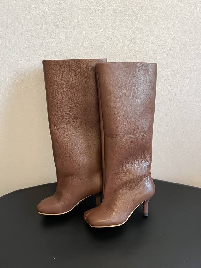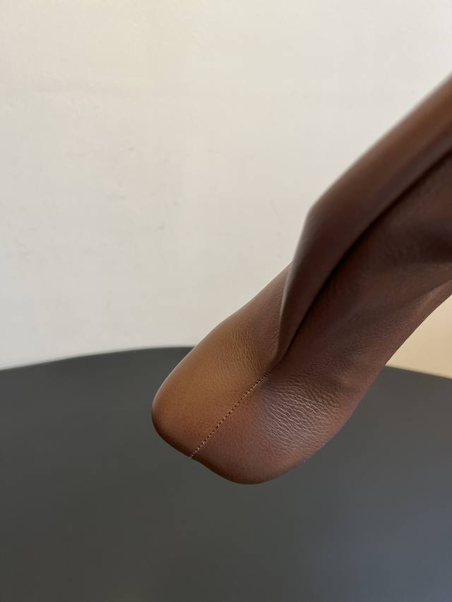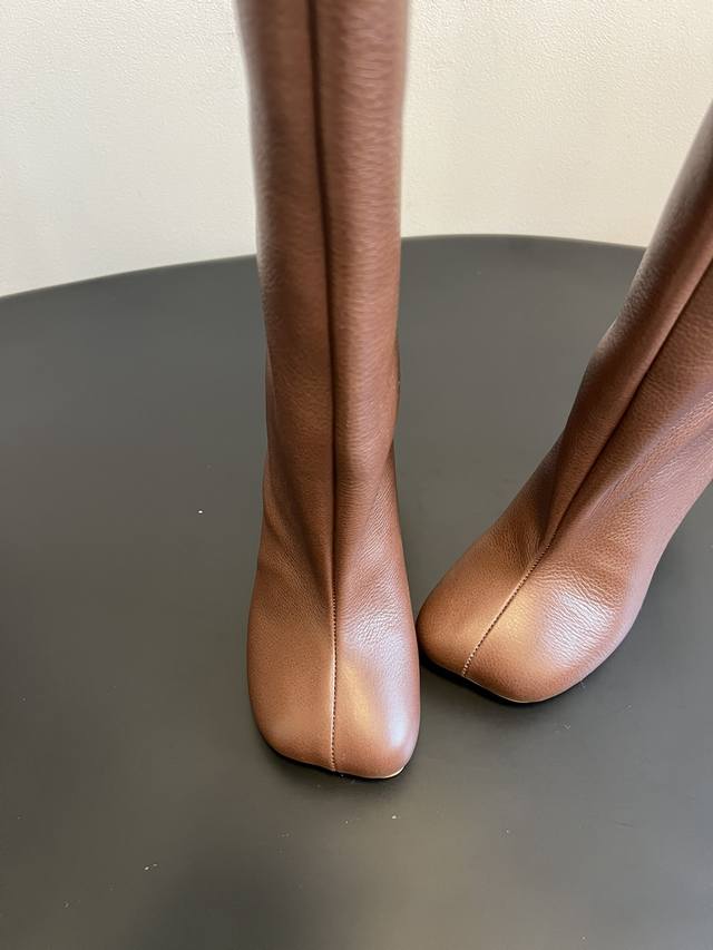 Top-tier Maison Margiela Tall Leather Hoof Boots. The upper is crafted from premium leather, soft to the touch and with a delicate sheen, exuding a luxurious feel. The drape of the leather allows the boot shaft to conform to the leg's curves, both flattering and sleek. Pair them with a velvet dress or vintage print maxi skirt, layered with a structured blazer or fur coat. The retro split-toe design and high-top silhouette of the hoof boots create an elegant, French-inspired look, suitable for evening events, art exhibitions, and more. Upper: Cowhide Lining: Cowhide Outsole: Genuine Leather Size: 35, 41, 40, 41 (Custom Made)