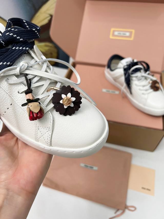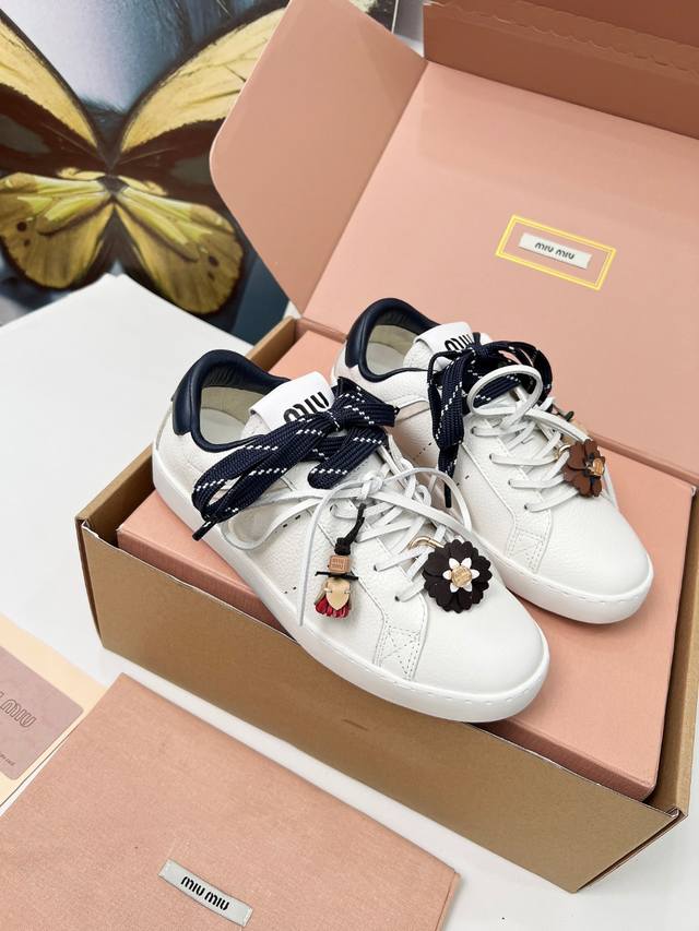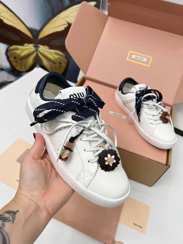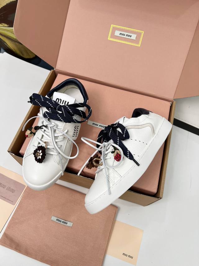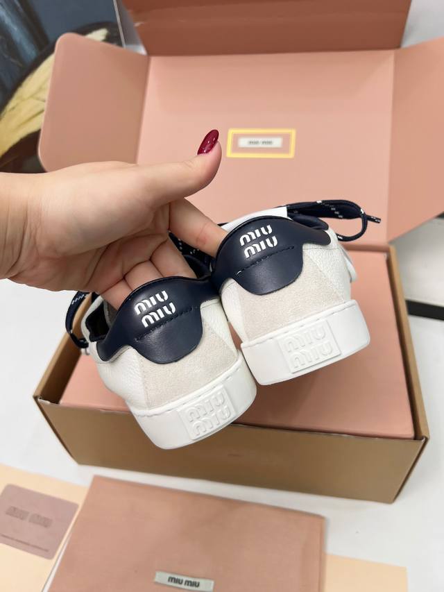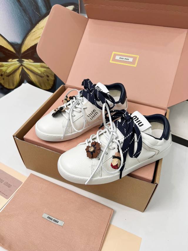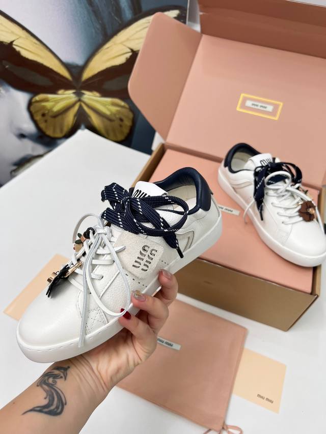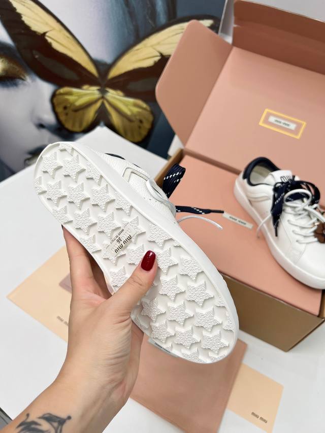 Top-tier Miu Miu white sneakers, the "dirty" version! 25 new British-style lace-