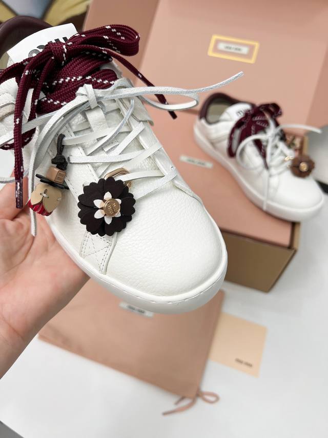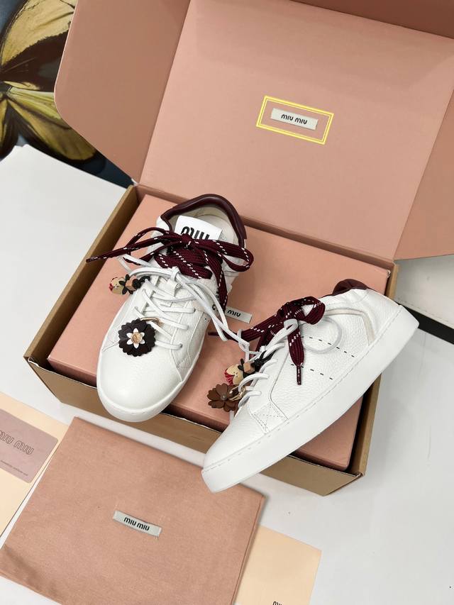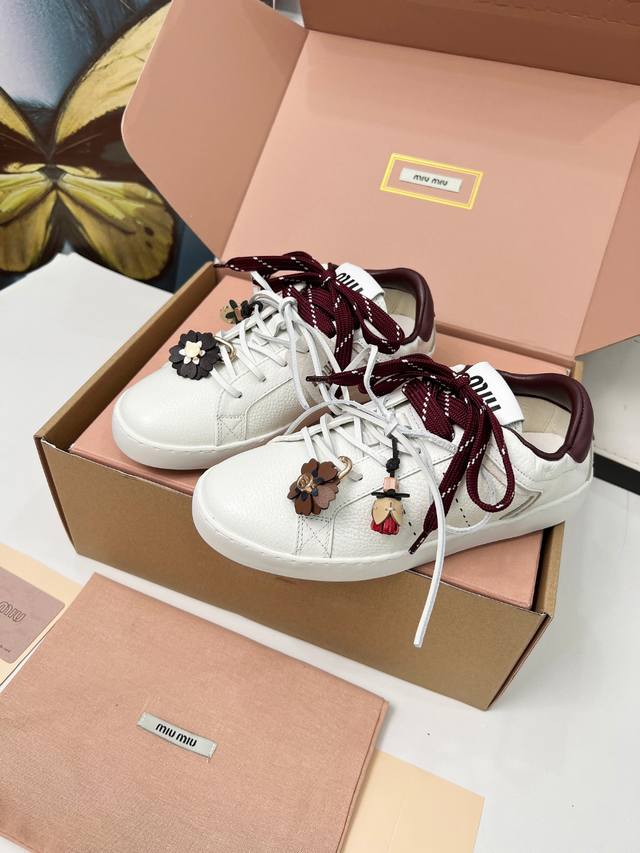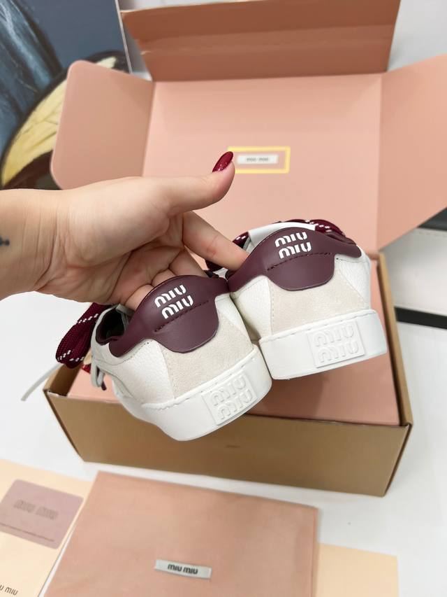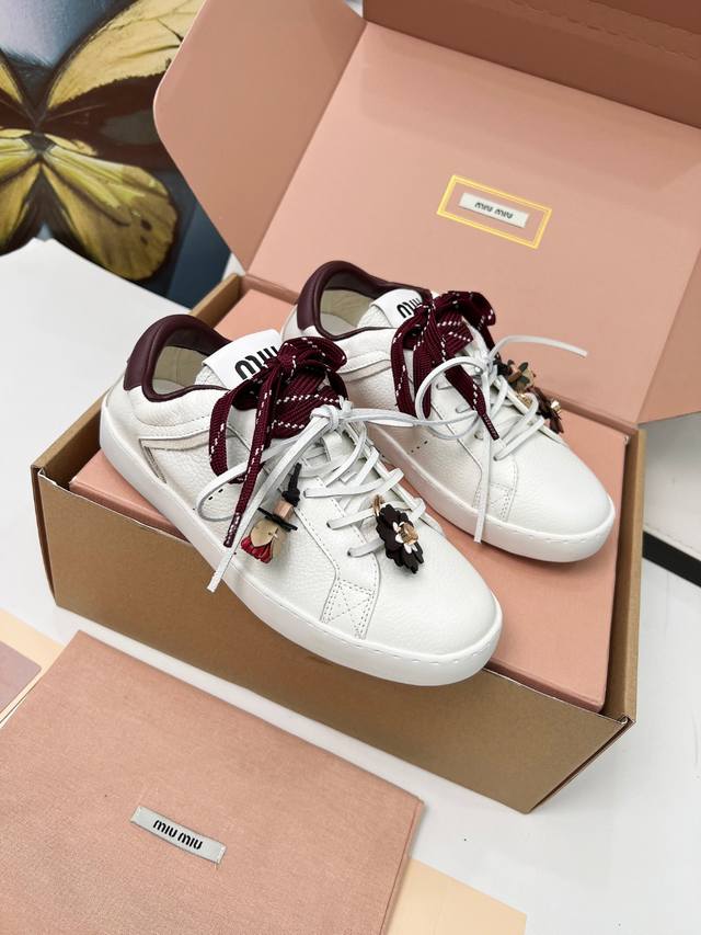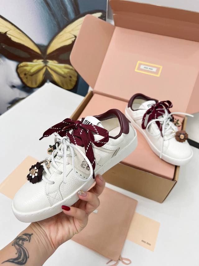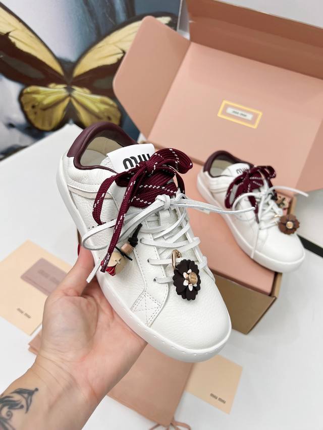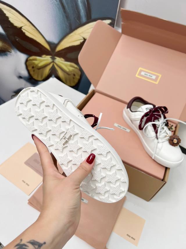 Top-tier Miu Miu white sneakers, the "dirty" version! 25 new British-style lace-