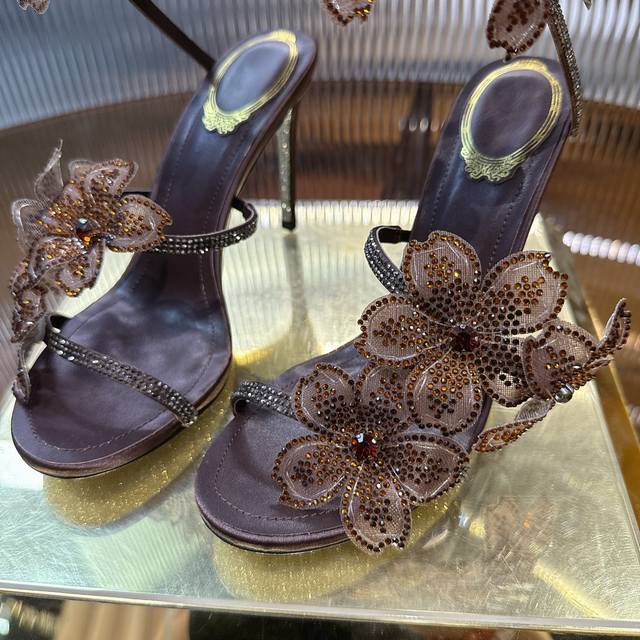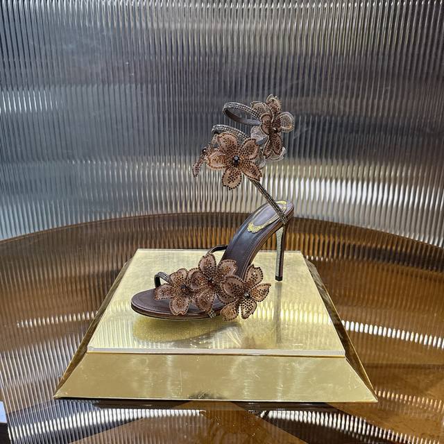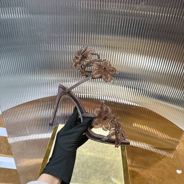 RC 2025 upgraded heavy-duty RC snake-patterned hot series, 5-petal flower rhinestone-encrusted anklet high-heeled sandals