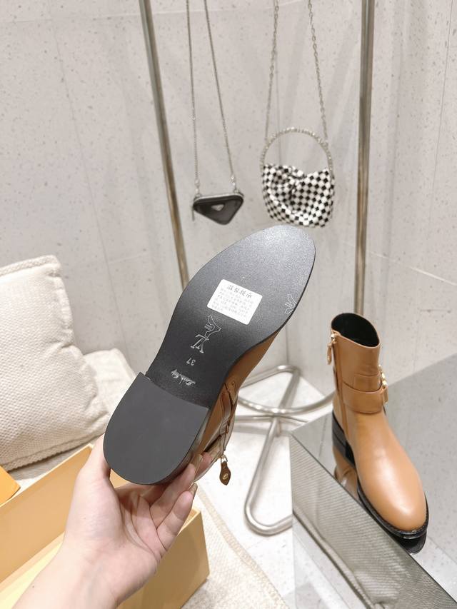 Top-tier replica! Fully packaged. A perfect 1:1 replica purchased directly from the original. Newly upgraded with an authentic last. These Westside flat ankle boots are crafted from fine cowhide leather and feature a large metal spring buckle, exuding a chic and effortless style. Materials: Imported top-grade calfskin. Lining: Full-grain cowhide. Outsole: Original thickened genuine leather. Sizes: 35-40, 41, 42, 43. Custom orders are non-refundable and non-exchangeable.