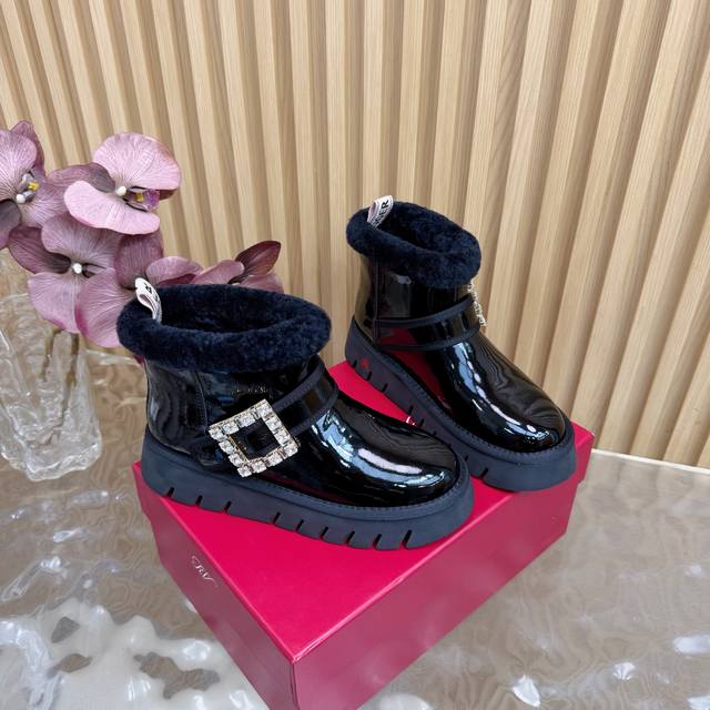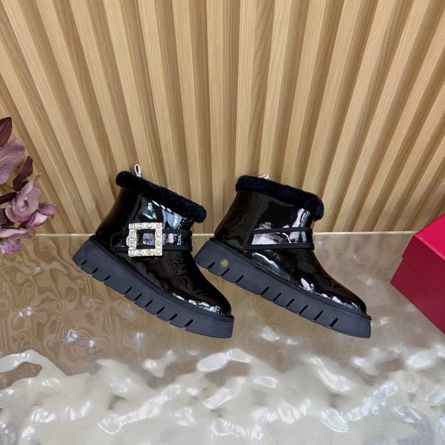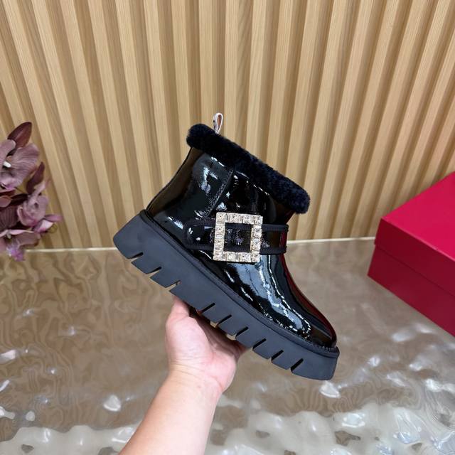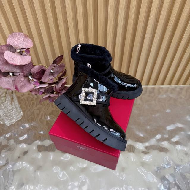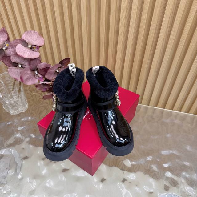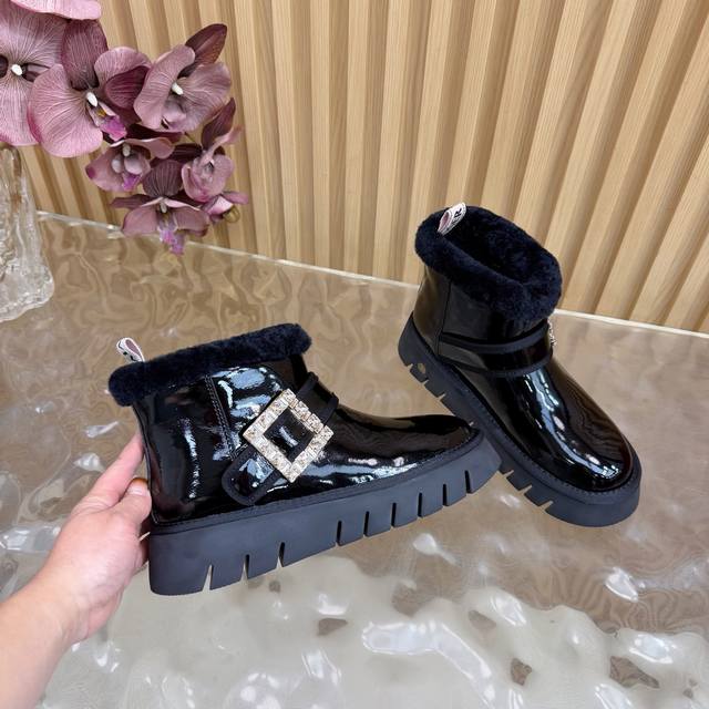 Top-tier Roger Vivier 2025 New Rv Rhinestone Furry Slip-on Boots DDD The brand's half-century-old square buckle is adorned with sparkling rhinestones DDD shimmering with subtle luster under light DDD Each rhinestone embodies the exquisite craftsmanship of Italy DDD A tribute to the classic 1965 design DDD A vibrant interpretation of contemporary luxury. DDD Elastic side design conforms to the ankle curve DDD Easy to slip on and off, and also flatters the leg shape DDD Suitable even for slightly chubby calves. DDD The approximately 5cm chunky heel is stable and comfortable to walk in, DDD Even after long walks, there is no burden DDD The combination of leather lining and rubber sole DDD Comfort and quality are hidden in every step. DDD Patent leather upper with a high-gloss finish. DDD The cool, structured boot shape creates a wonderful balance with sparkling rhinestones. DDD From tailored trousers for the workplace to flowing dresses for dates. DDD From autumn trench coats to winter overcoats, these are versatile must-haves. DDD Sizes: 35-39, 40, 41 (custom sizes available).