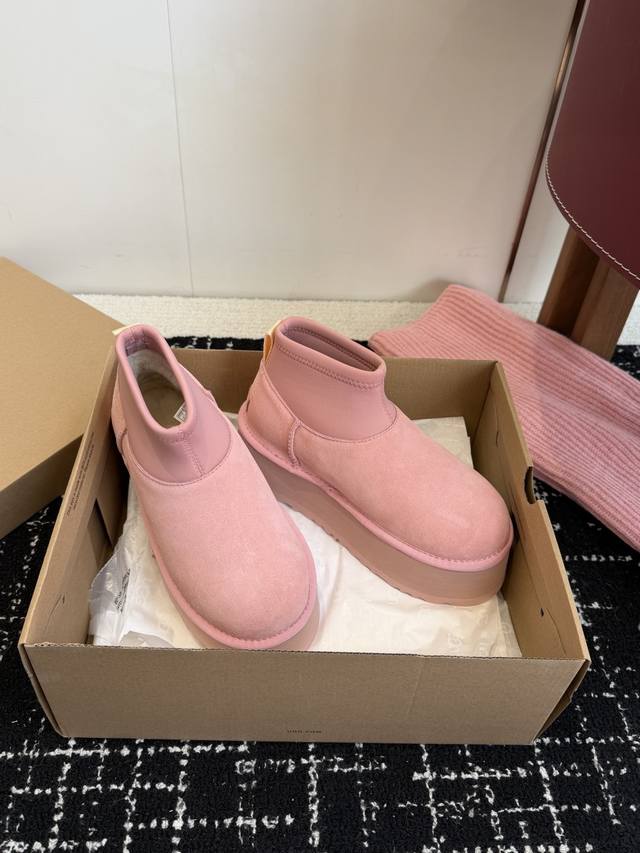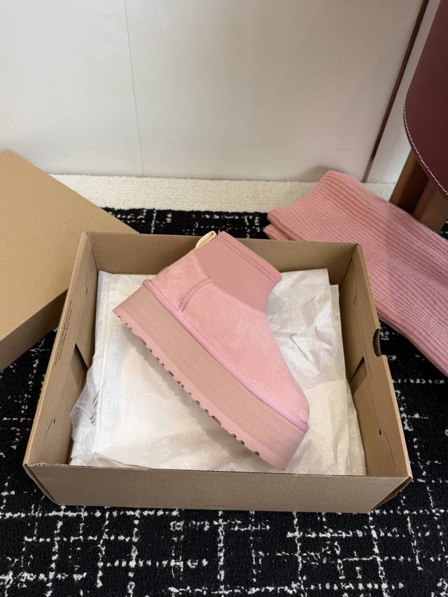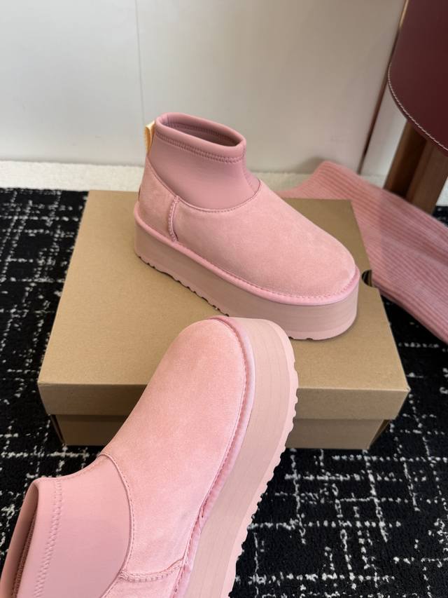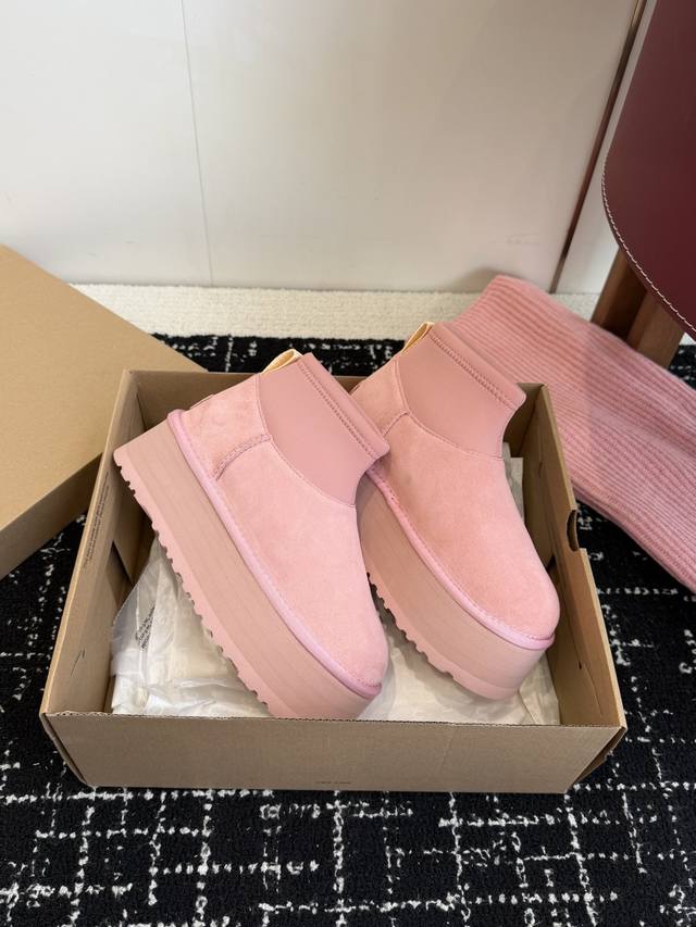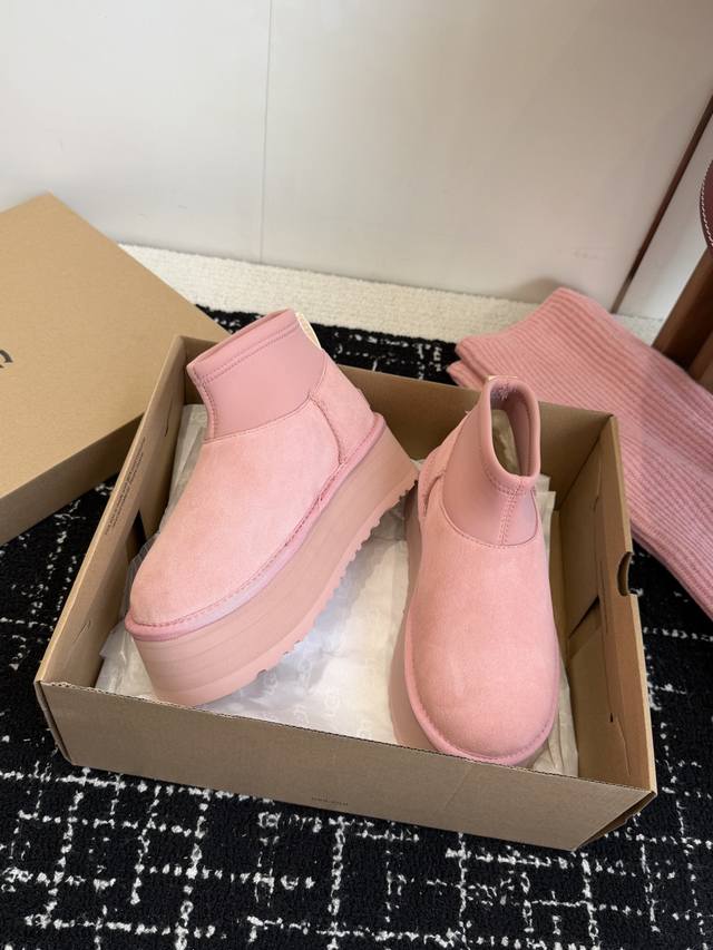 Top-Tier Socks for Online Shoppers DDD Ugg North American Exclusive Mini Pink Sock-Style Thick-Soled Snow Boots DDD I fell in love with these snow boots at first sight! The pink color is super girly, and the sock-style design is incredibly warm. The socks and boots are detachable~ They're a photogenic must-have, perfect for winter! DDD Materials: Cowhide + Australian Pure Wool Outsole: Non-slip and durable Treadlite By Ugg lightweight outsole DDD Sole Thickness: 5cm DDD Size: 35-41 Sizes 40 and 41 are non-refundable and non-exchangeable DDD