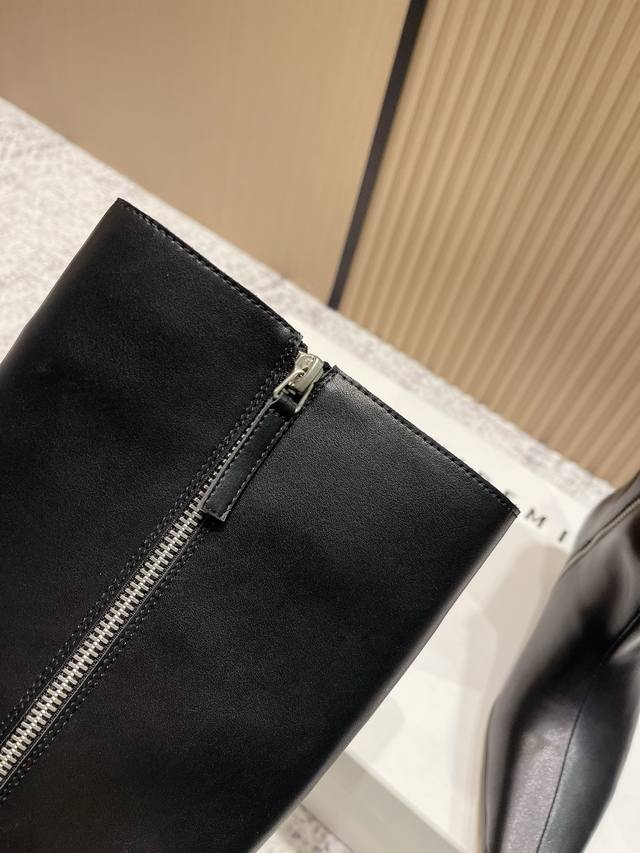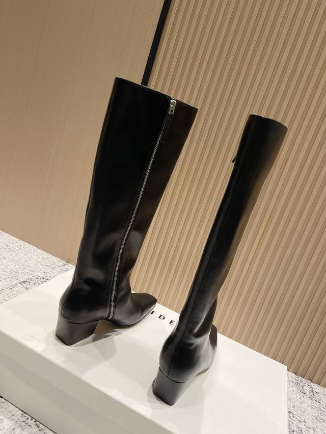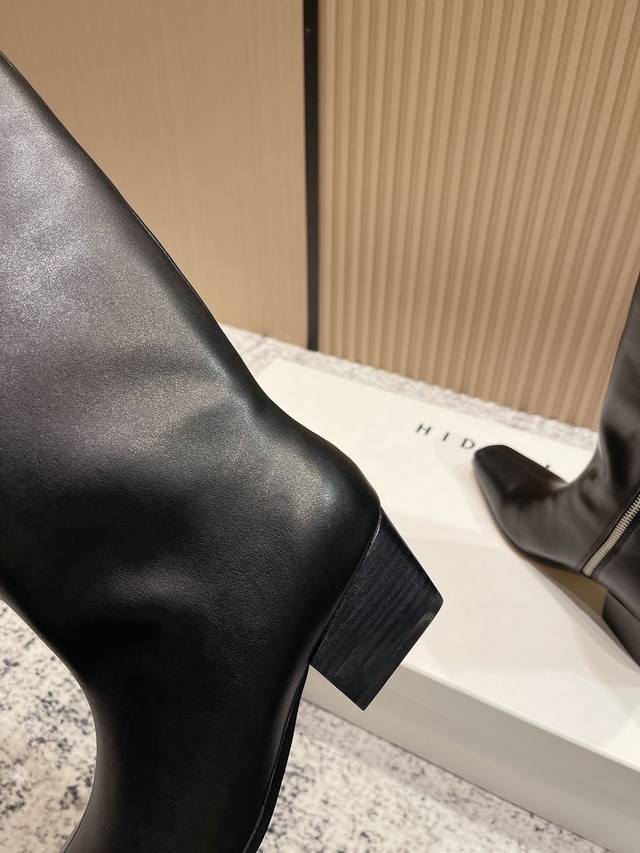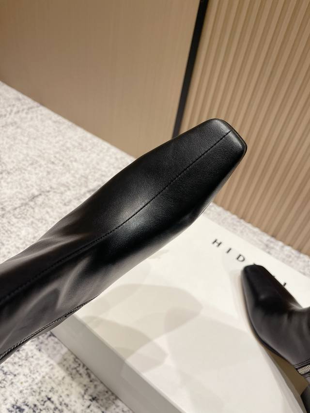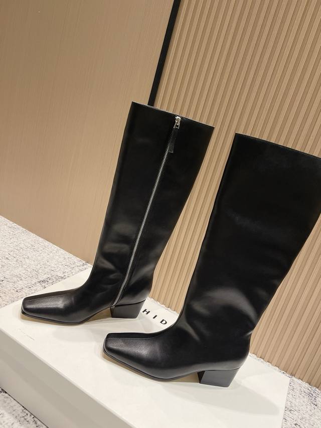 25S Autumn/Winter New Hidemi Minimalist Square Toe Chunky Heel Long Boots with Side Zipper Straight Riding Boots.