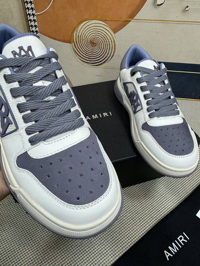 Top-tier version Amiri Ma-1 Spring/Summer new arrival; Couple's casual loafers, versatile sneakers. Features the classic large tongue design, shortened shoe length, thickened midsole, and a more rounded toe. The Amiri brand lettering and Ma logo are also featured on the side of the shoe. Material: Top-grain cowhide combined with breathable mesh. Lining: Breathable towel lining. Outsole: Foamed midsole combined with TPU sole. Heel height: 4cm platform. Women's sizes 35-40; Men's sizes 39-45; Size 46 (custom orders, no returns or exchanges).