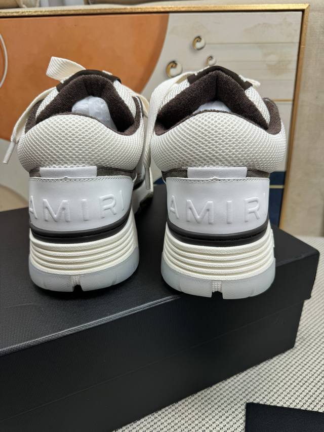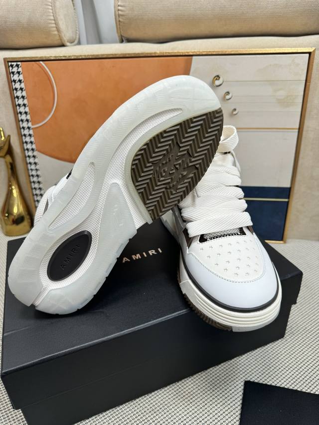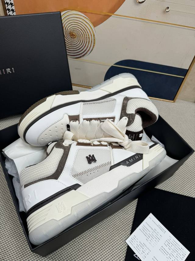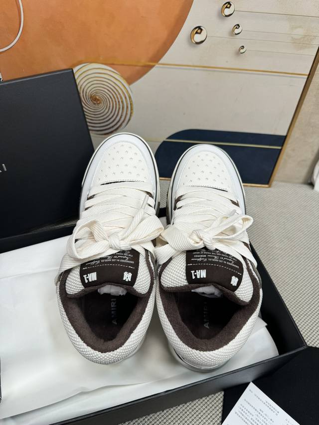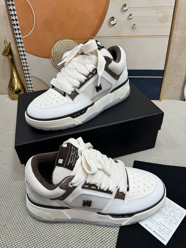 Top-tier version Amiri Ma-1 Spring/Summer new arrival; Couple's casual loafers, versatile sneakers. Features the classic large tongue design, shortened shoe length, thickened midsole, and a more rounded toe. The Amiri brand lettering and Ma logo are also featured on the side of the shoe. Material: Top-grain cowhide combined with breathable mesh. Lining: Breathable towel lining. Outsole: Foamed midsole combined with TPU sole. Heel height: 4cm platform. Women's sizes 35-40; Men's sizes 39-45.