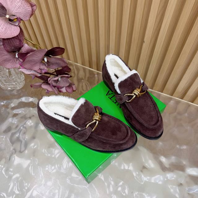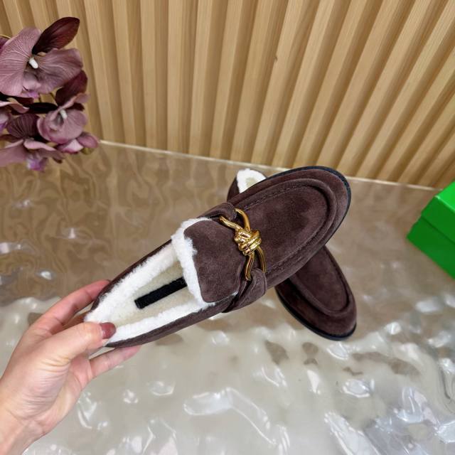 Top-tier version Bv loafers, single shoes, half-slippers series Metal cable heel