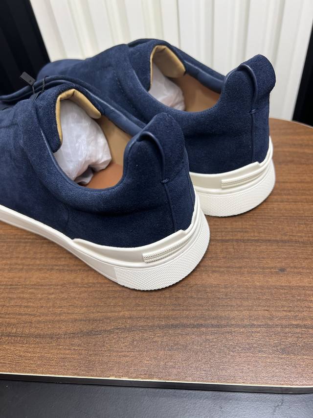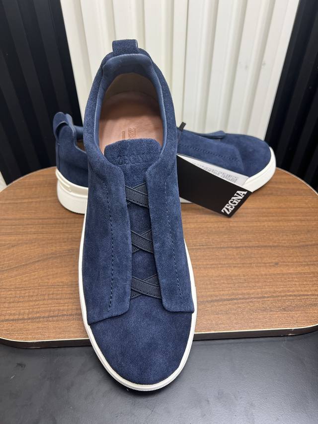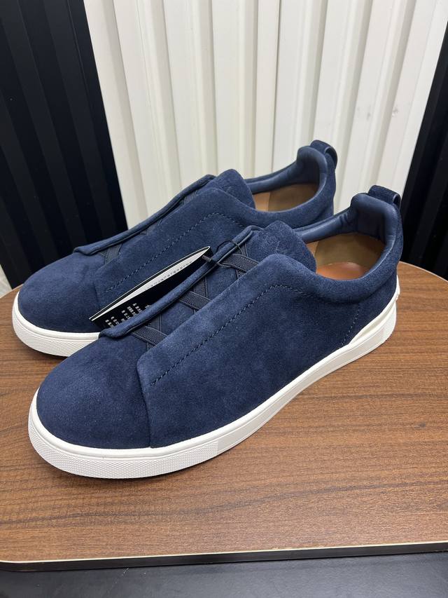 Top-tier version, factory price (pp): DDD Zegna Secondskin Triple Stitch Casual Sneakers, Dark Brown Calfskin, Original Foamed Lightweight Sole DDD This low-top sneaker features a smooth and soft upper. Adorned with the iconic triple-cross elastic detail, it pays homage to the hand-stitched craftsmanship of the brand's tailored jackets. The lightweight design complements the white rubber sole, designed for a fast-paced lifestyle. Inspired by glove making, this shoe blends the wisdom of generations of artisans, crafted from top-quality New Zealand calfskin for a lightweight texture, with a refined lining and exceptional resilience. It delivers a unique fit. The ultra-lightweight rubber outsole is adorned with double-stripe logo details, reinterpreting the iconic shoe with an ultra-lightweight construction. Features include a reverse-stitched deerskin upper at the collar, a liningless midsole, and a slip-on design with cross-elastic bands and a 3D "ripple" pattern. The brand name is heat-pressed onto the tongue. DDD features a lightweight, high-elasticity rubber foam sole, a TPU double-stripe brand logo stripe on the heel, a hollow-plastic construction on the upper, and stitching around the outsole. The shoe is 100 grams lighter than previous models. The lightweight, high-elasticity rubber outsole and removable footbed with the Zegna logo add a modern, dynamic touch to this sneaker. DDD dress shoe sizes: 39, 40, 41, 42, 43, 44, 45, 46, 47. DDD comes with original packaging and is in stock.