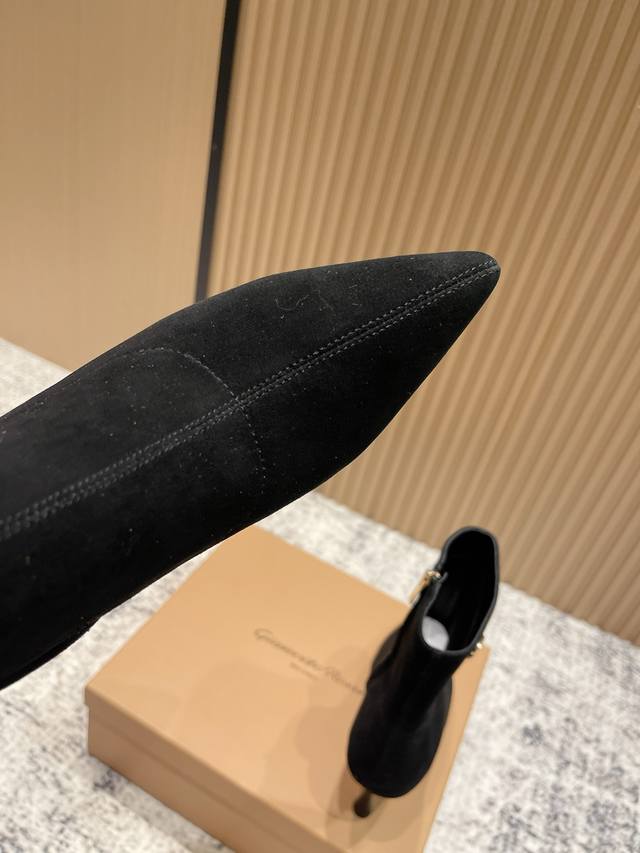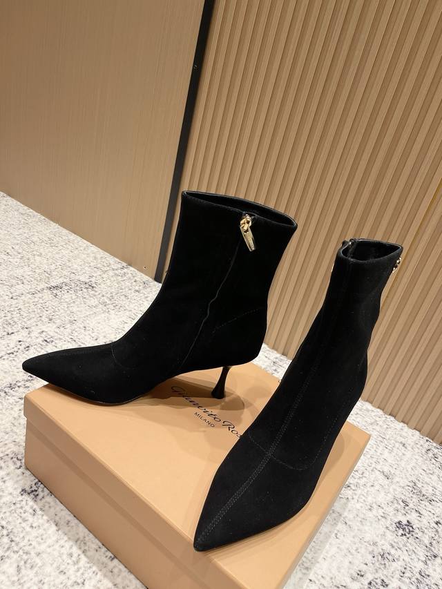 Top-tier version: Gianvito Rossi pointed-toe side zipper ankle boots. Simple and elegant design. Fashion highlight! Adhering to traditional Italian craftsmanship, focusing on exquisite details, creating elegant femininity, every pair of Rossi women's shoes takes the female curves into account before design. Furthermore, while inheriting elegance, it is also more youthful and fashionable, shaping fashionable charm with vibrant colors and sophisticated lines! Upper: Cowhide/Suede Lining/Insole: Sheepskin Sole: Italian genuine leather Heel height: 6cm Sizes: 35-39 40. Custom orders are non-refundable and non-exchangeable.