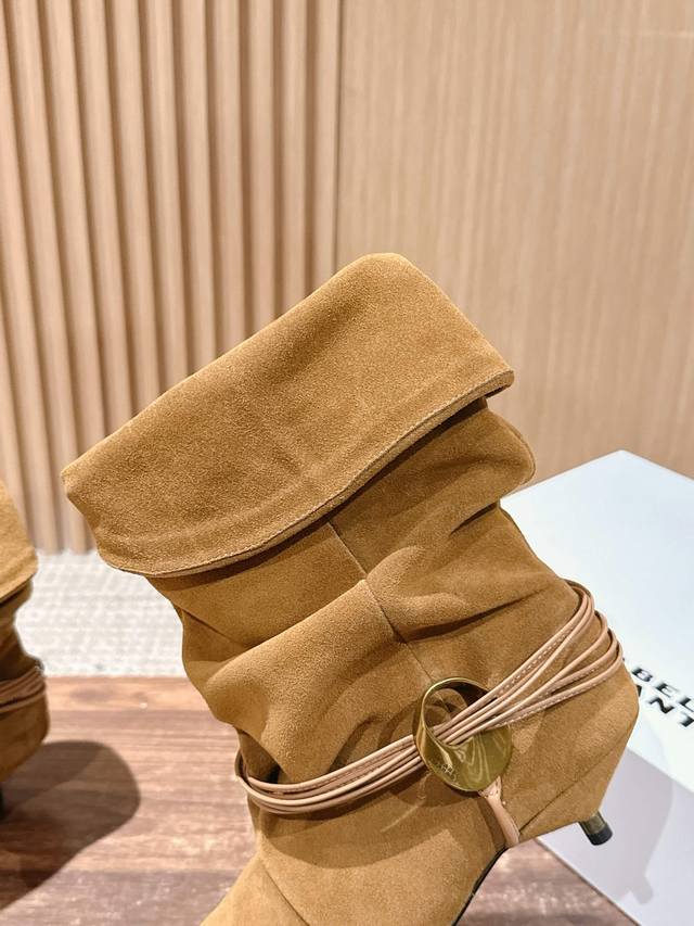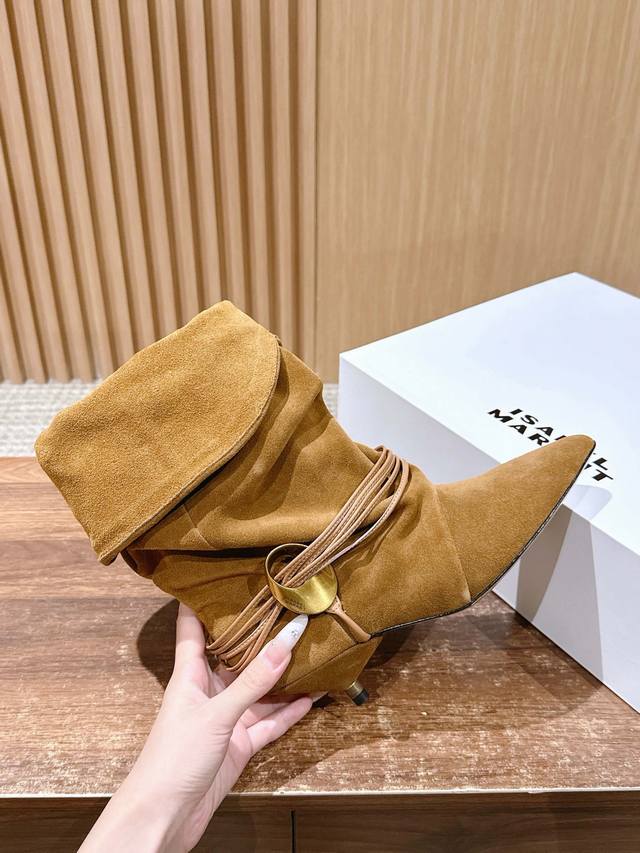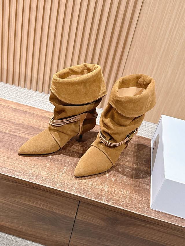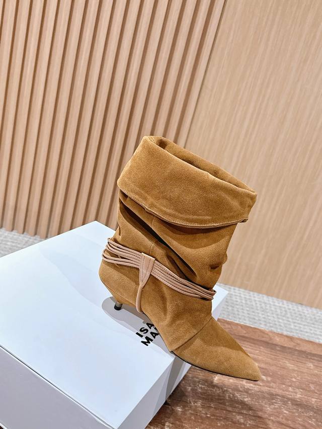 Top-tier version Isabel Marant Fall/Winter Pleated Flat Ankle Boots. These boots are a rare find, the pleated design is effortlessly chic, perfect for casual wear. I fell in love at first sight! Beautiful Western-style boots, relaxed French style, soft and comfortable, super comfortable kitten heel, great for walking, not tiring at all. Upper: Imported cowhide leather. Lining: Imported cowhide leather. Outsole: Imported genuine leather. Size: 35-39. Size 40 is custom-made and non-refundable.