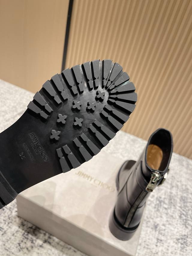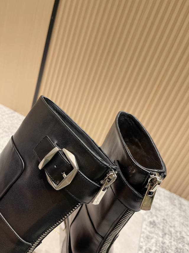 Top-tier version: Jimmy Choo Fall/Winter Retro Back Zipper Platform Brooklyn Boots. Made in Italy, Jimmy Choo's "Brooklyn" boots elevate your footwear collection. These supple black leather knee-high boots feature a sophisticated silhouette with double buckle detailing and a practical back zipper for easy wear. The durable rubber sole ensures excellent grip, seamlessly blending style and function. Material: Original imported calfskin; Lining: Imported cowhide; Outsole: Original molded rubber outsole; Size: 35-41 (40-41 sizes are custom-made and non-refundable).