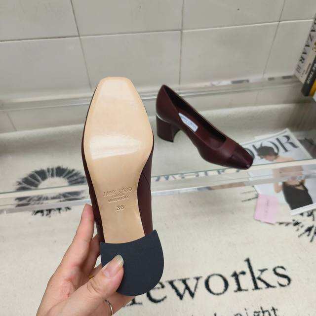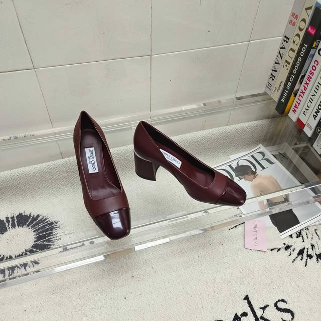 Top-tier version Jimmy Choo new Mary Jane shoes, Jenson 65 series high heels, crafted from high-gloss patent leather, with exquisite crystal embellishments outlining a sculpted wide heel shape, exuding an eye-catching and captivating aura. The sophisticated square toe design and softly sculpted upper radiate elegance and understated charm. Upper: Lambskin with split edges; Lining: Lambskin; Heel height: 6.5cm; Outsole: Italian genuine leather; Sizes: 35-39; Custom orders are non-refundable and non-exchangeable.