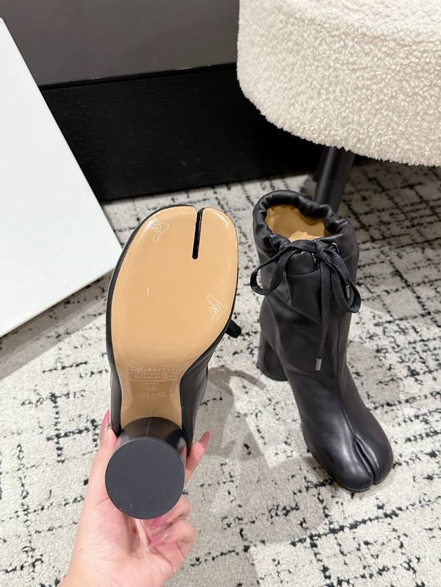 Mm6 brand Tabi split-toe shoes and boots autumn and winter new arrivals highest version buyer's purchase 1:1 perfect replica split-toe Tabi boots original mold double-layer genuine leather sole original last shoe shape very generous can be matched with various styles easily handle a blessing for short legs Instantly transforms legs into long legs Unrestrained by conventions, be yourself as you like Super soft and comfortable on your feet