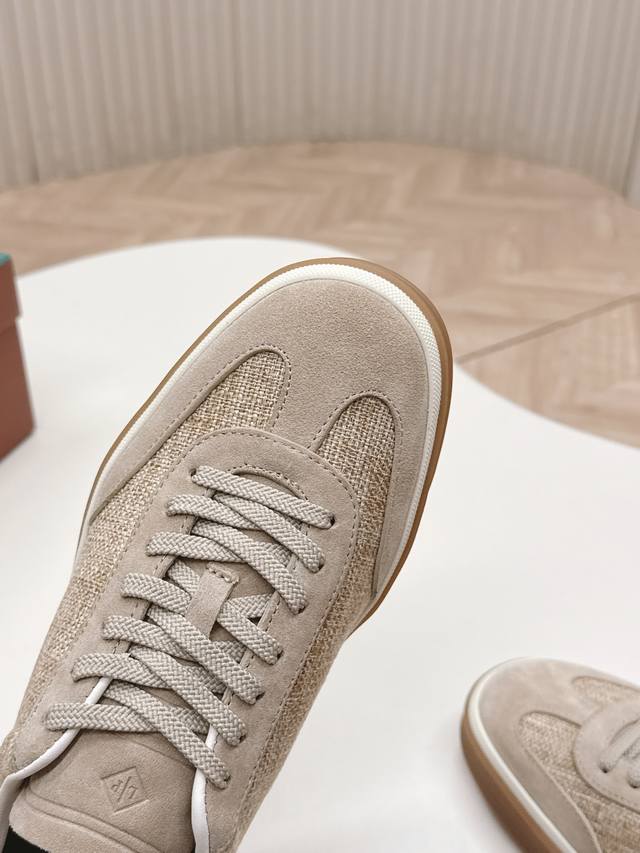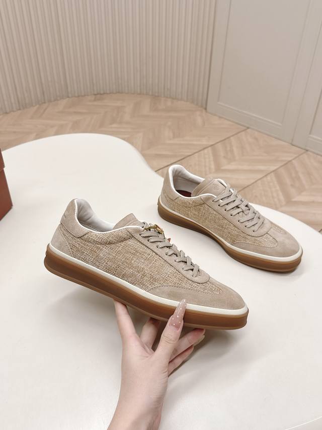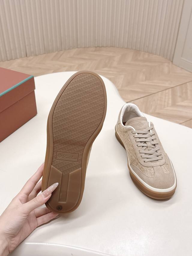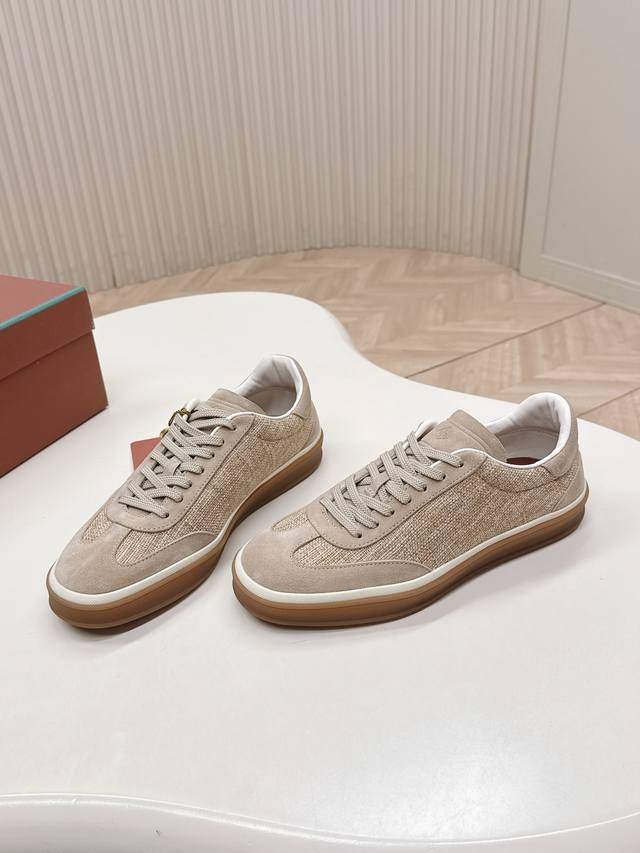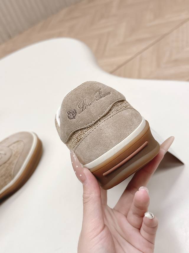 Top-tier version of the Loropiana Weekendwalk casual shoes, featuring suede upper with nubuck inserts and slightly padded nylon trim on the inner side, highlighting a sporty style. The lightweight sole adds a touch of modernity. Features include tonal nylon laces, lightweight inserts on the sole, a Kummel-colored rubber outsole adorned with the initials "Lp," and Kummel-colored eyelets with the Loro Piana logo. Perfect for everyday wear! Sizes: 39-45, 45 customizable.