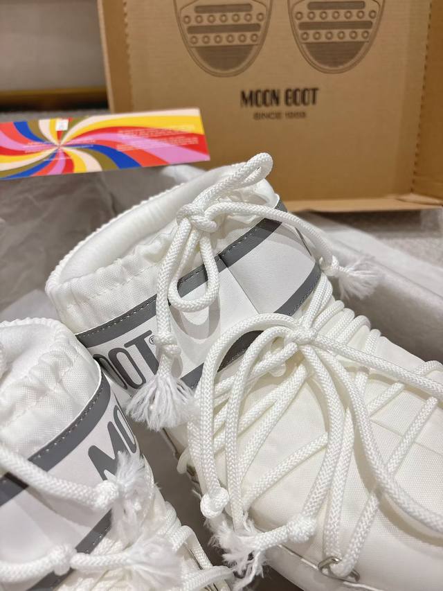 Top-tier version released! The Moon Boot, a darling of the ski season! It was already incredibly popular back in the millennium. Celebrities like Paris Hilton and Victoria Beckham wore it frequently. Now, with the Y2K trend making a comeback, it's a must-have for any snow adventurer! Unisex and left/right style. Looks massive but is surprisingly practical; looks incredibly slimming with yoga pants. Perfect for those heading north! A must-have for snow fun! Upper: Waterproof fabric. Lining: 100% down filling. Sole: Thermoplastic rubber. Sizes: 35, 38, 39, 41, 42, 44. Packaging: Original Moon Boot packaging. Hidden heel: 5cm.