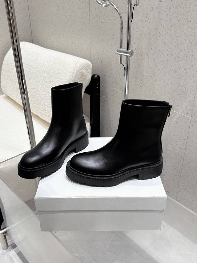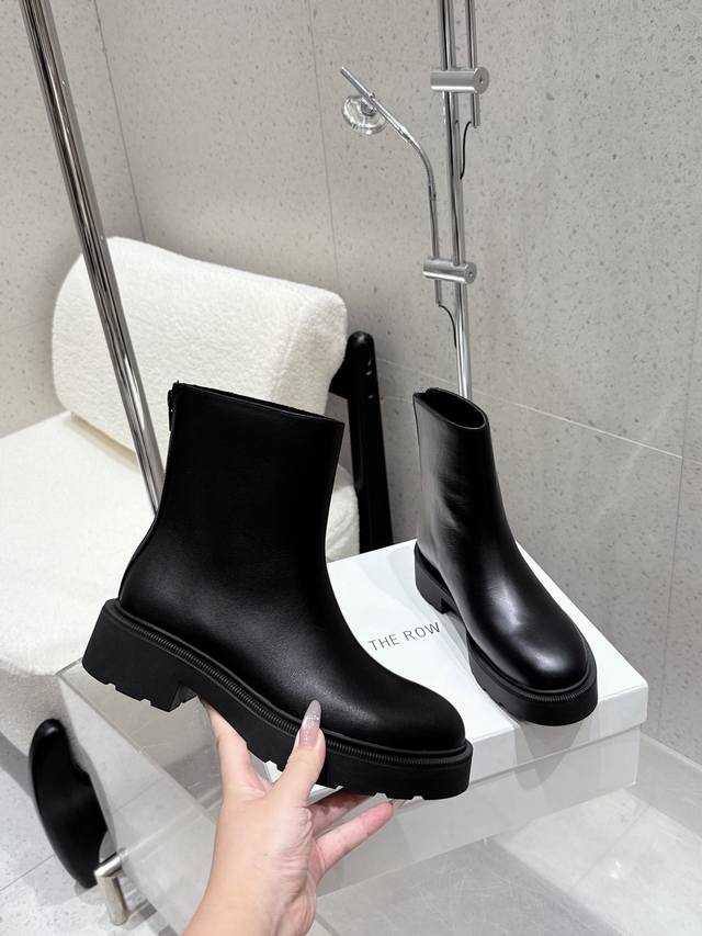 The Row 25Ss Autumn/Winter New Tr French Retro Chelsea Ankle Boots Minimalist Thick Sole Back Zipper Ankle Boots