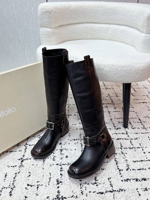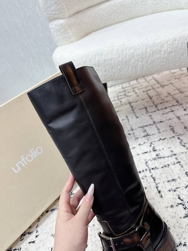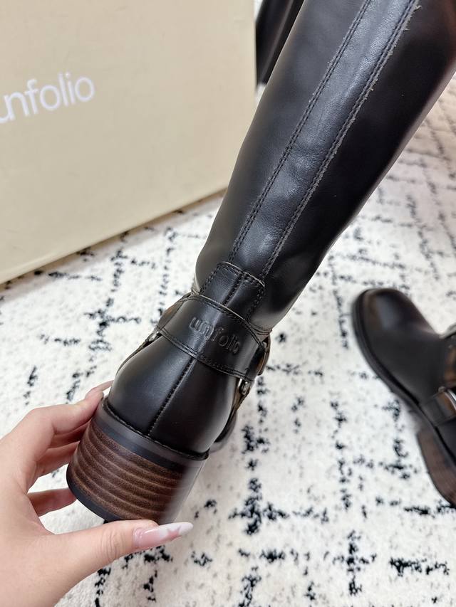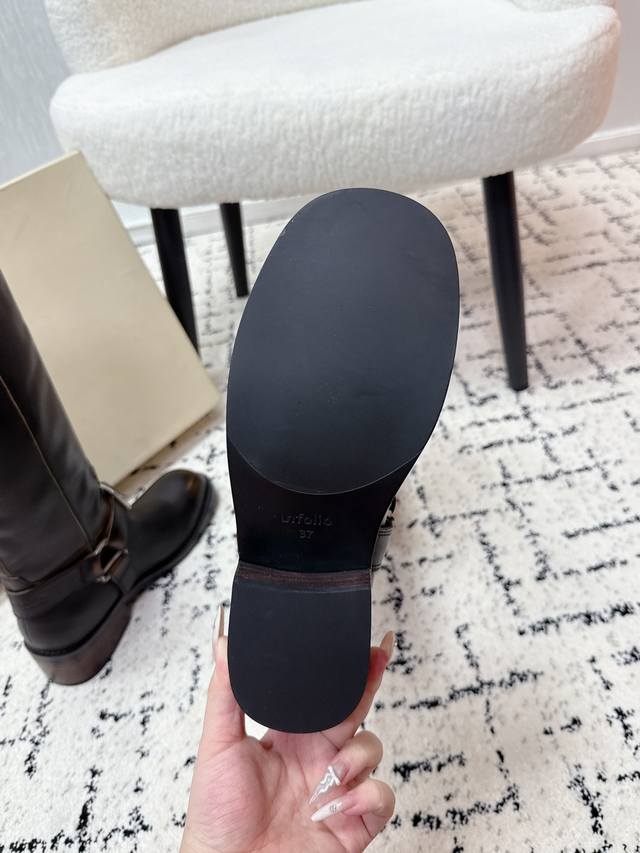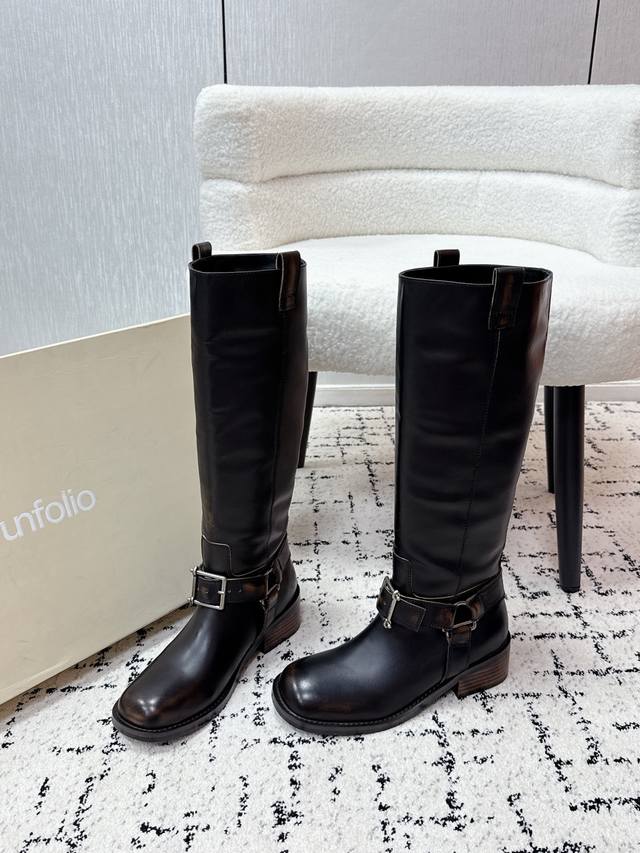 Top-tier version DDD Unfolio trendy brand 25 Fall/Winter retro new riding boots DDD The boots feature metal buckle designs, adding a touch of fashion and design to the overall look, while also serving as decoration and securing the boot shaft; different colored boots have slight differences in details, the brown version has a more layered buckle design, while the black version looks more streamlined. DDD The boots feature a chunky heel design with a moderate height, ensuring both style and good stability and comfort, making them suitable for long-distance walking. DDD Upper: Cowhide DDD Lining: Cowhide velvet DDD Outsole: Rubber outsole DDD Height increase: 6cm DDD Size: 35-41 Size 40.41 Custom orders are non-refundable DDD