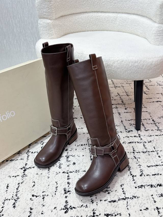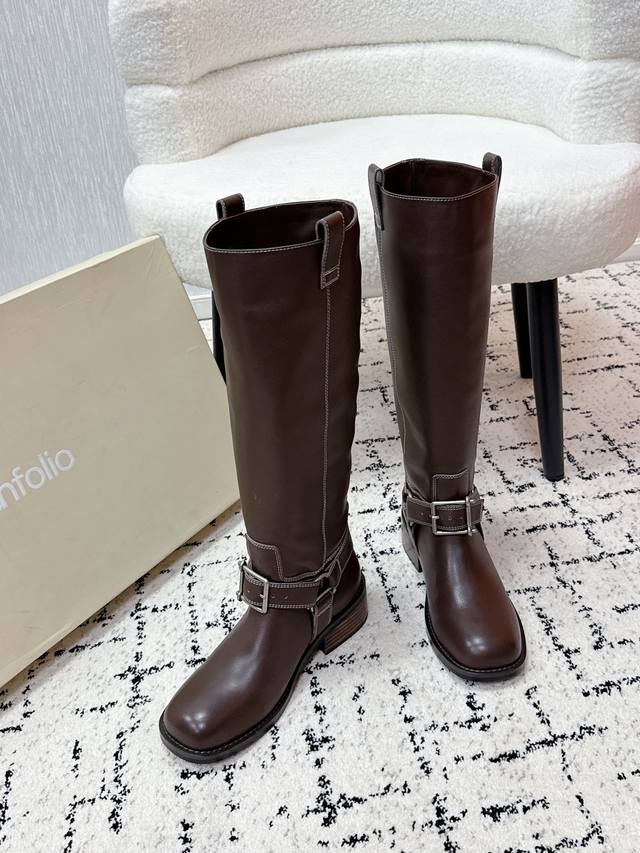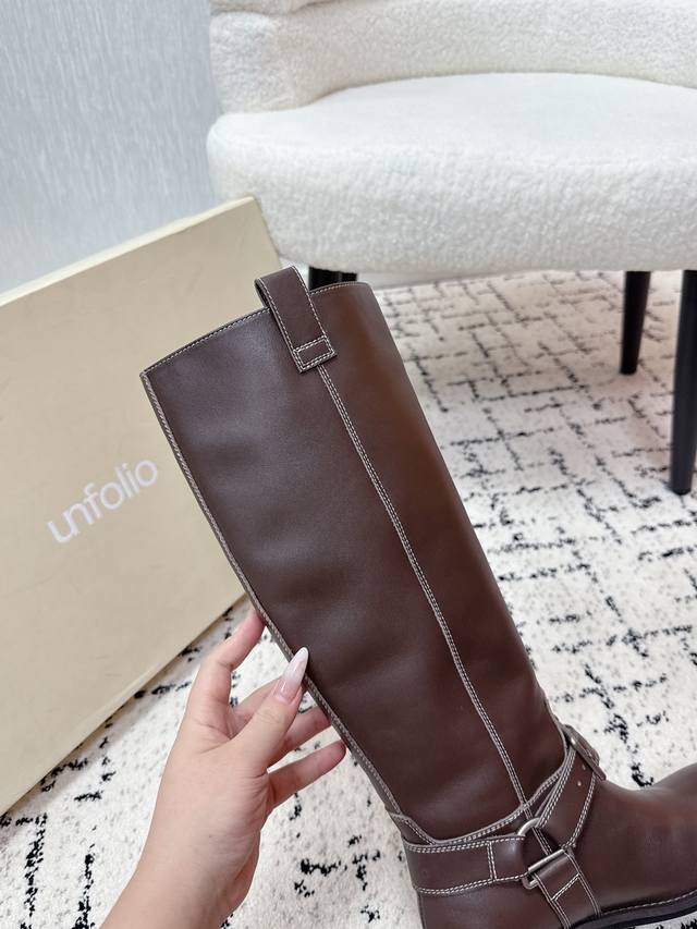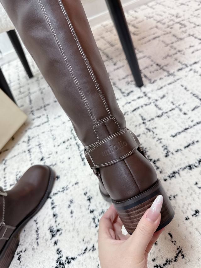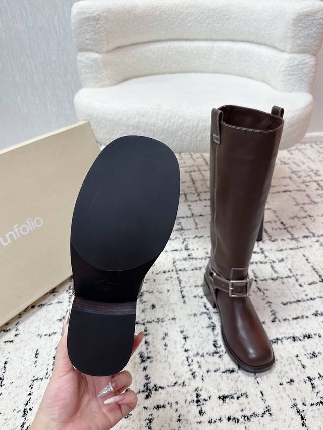 Top-tier version DDD Unfolio trendy brand 25 Fall/Winter retro new riding boots DDD The boots feature metal buckle designs, adding a touch of fashion and design to the overall look, while also serving as decoration and securing the boot shaft; different colored boots have slight differences in details, the brown version has a more layered buckle design, while the black version looks more streamlined. DDD The boots feature a chunky heel design with a moderate height, ensuring both style and good stability and comfort, making them suitable for long-distance walking. DDD Upper: Cowhide DDD Lining: Cowhide velvet DDD Outsole: Rubber outsole DDD Height increase: 6cm DDD Size: 35-41 Size 40.41 Custom orders are non-refundable DDD