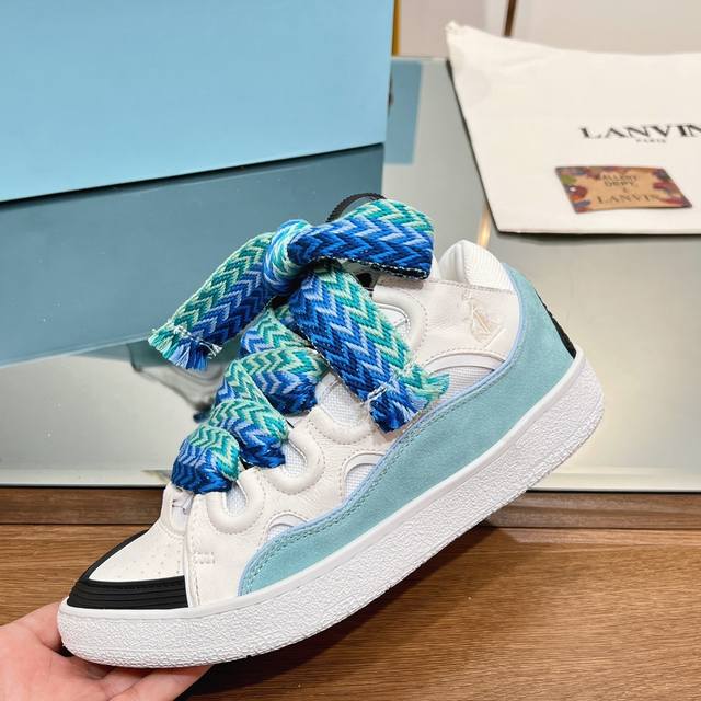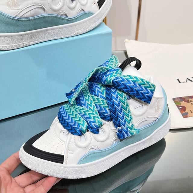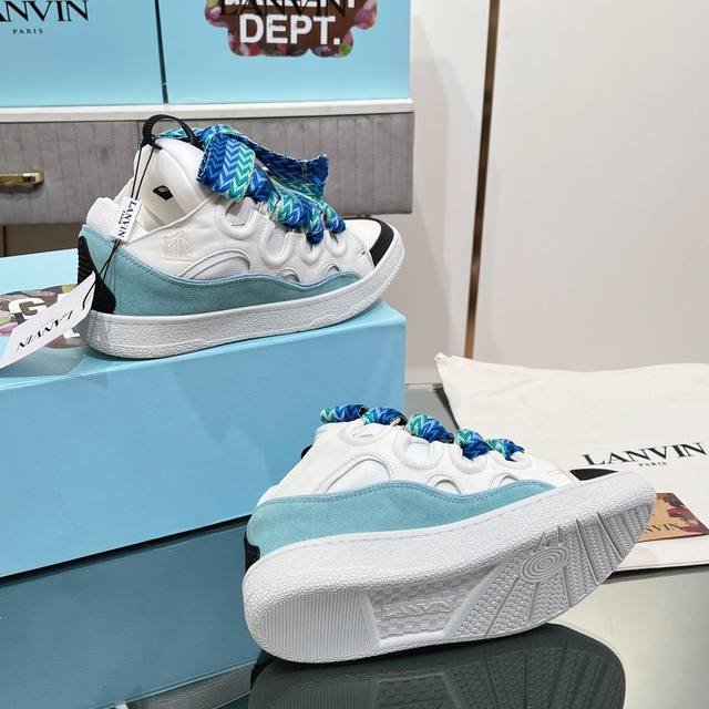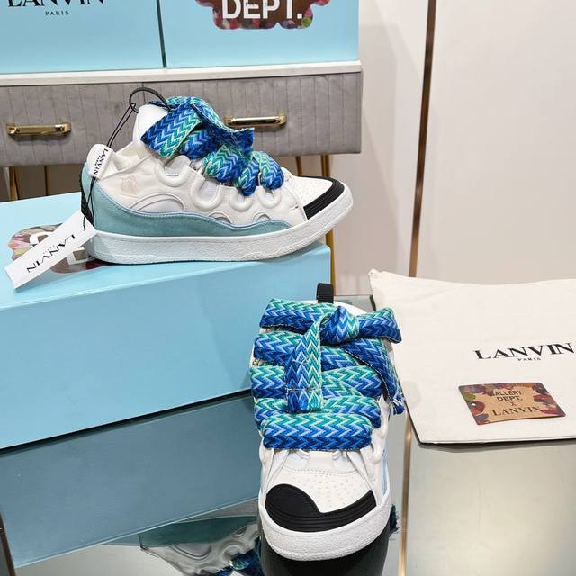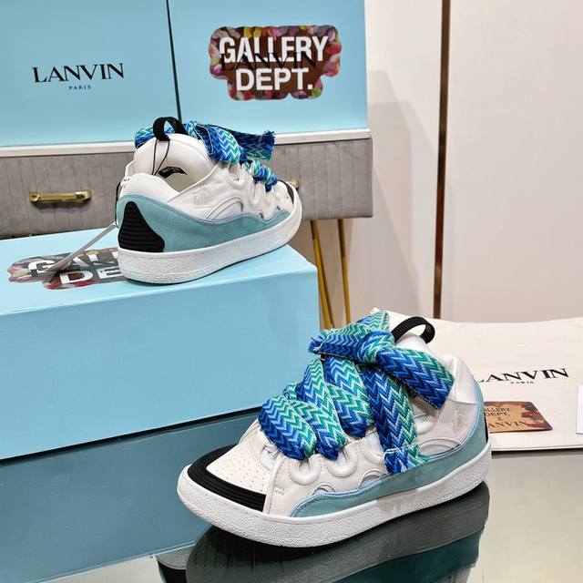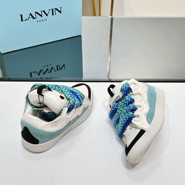 Lanvin Couple's Edition Curb Sports Shoes With Patchwork Laces, Low-Top Fashion Sneakers, Graffiti, Splash-Painted Bread Shoes, Skateboard Shoes, High-Top Shoes