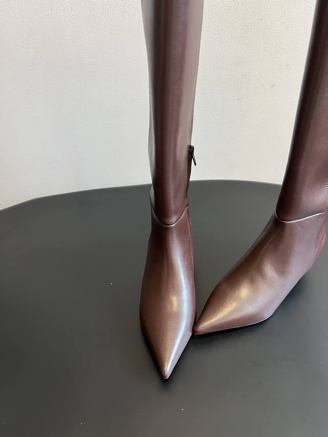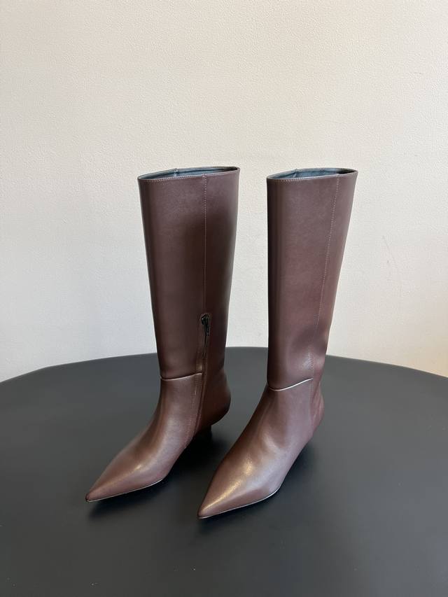 Totem* 25Ss Pointed-Toe Low-Heel Thigh-Wall Boots