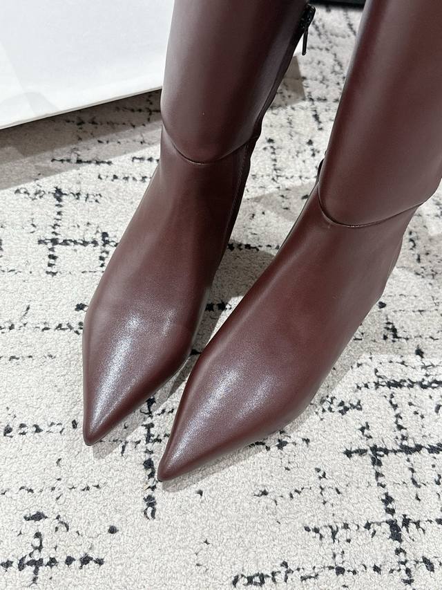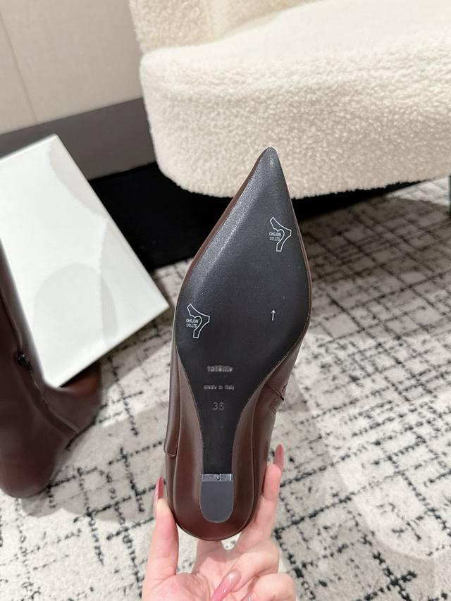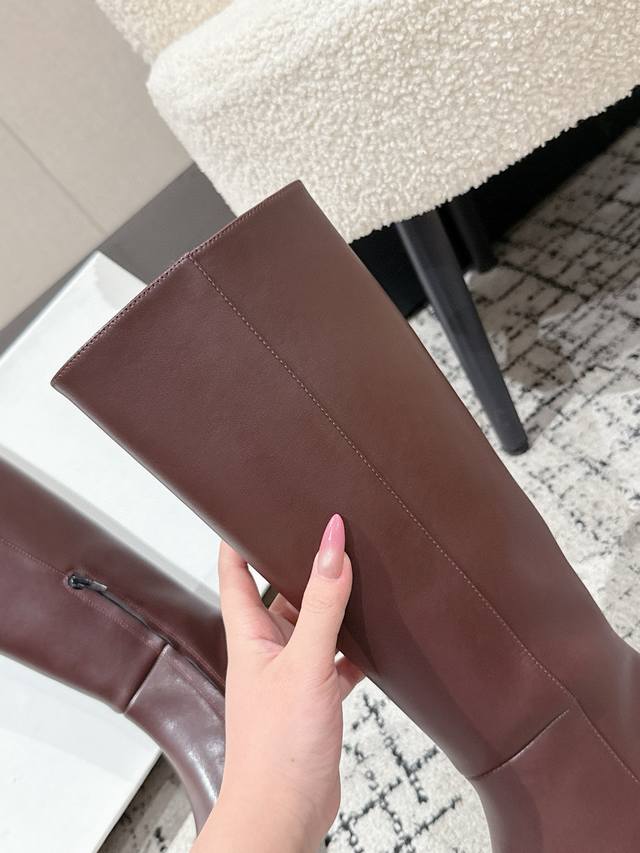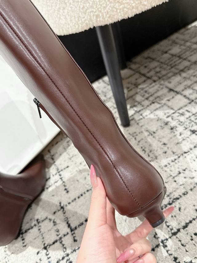 Toteme 25 Autumn/Winter New Retro Wedge Heel Long Boots Pointed Toe Side Zipper Rider Boots