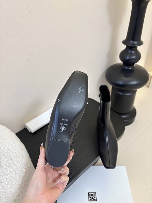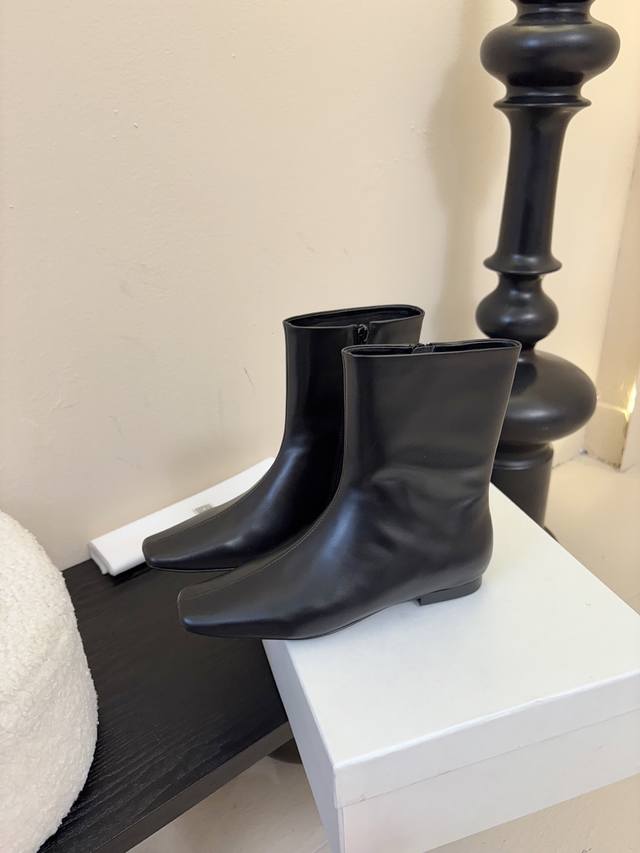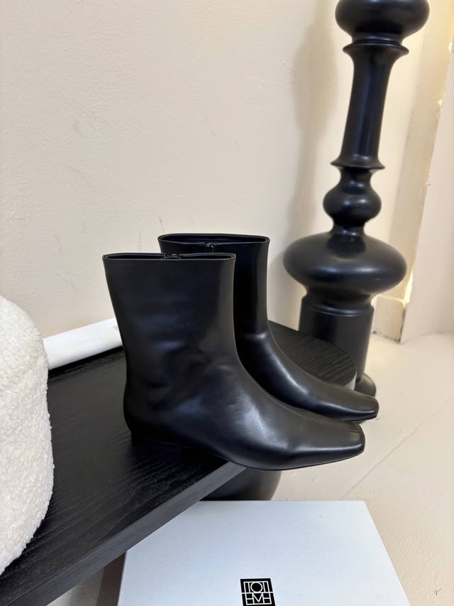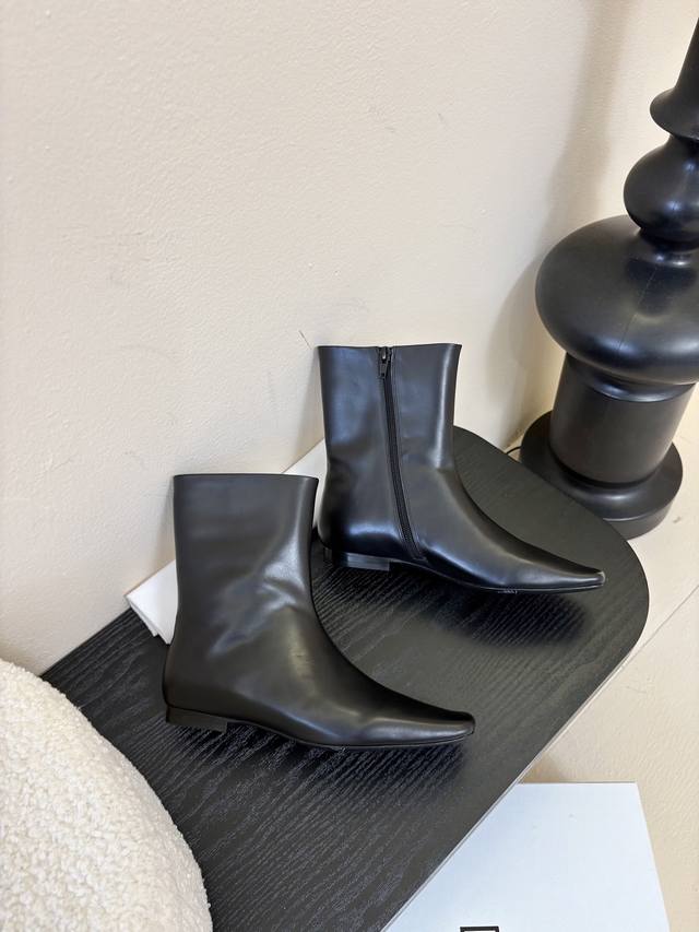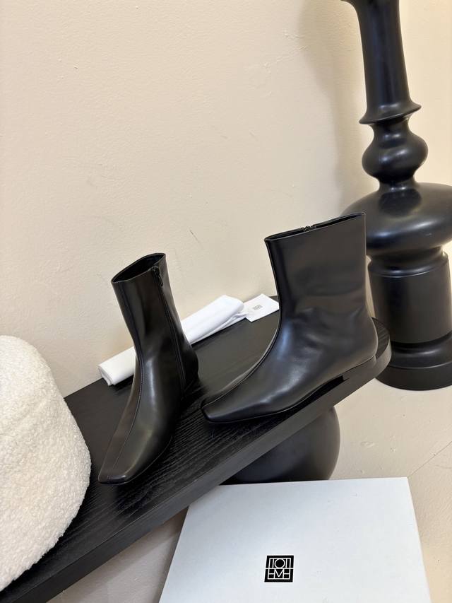 Toteme 25 new autumn and winter small square toe flat heel side zipper short boots! A pair of simple, capable, low-key and fashionable short boots, trust Toteme's simple and sophisticated sense of style, and you can wear it with your own unique taste.