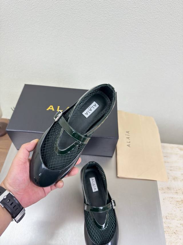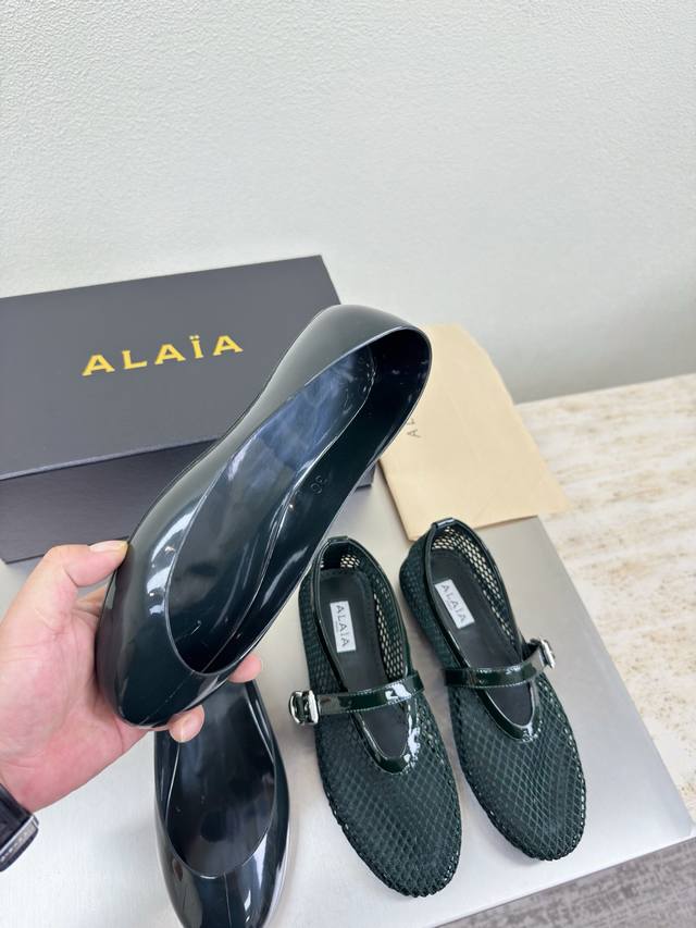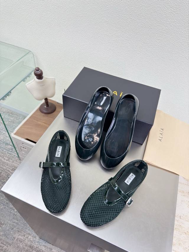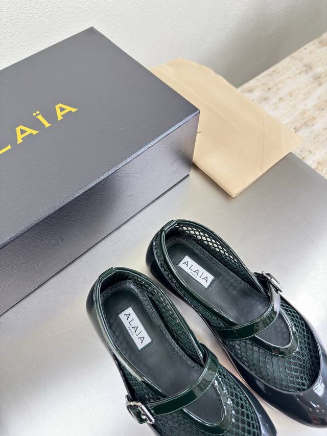 Two-way Alaia Mary Jane Mesh Shoes Ddd Rainy days are no problem Ddd Flat shoes Alaia Ddd From Paris, love at first sight Ddd Dark green mesh material Ddd Alaia also has another sexy side Ddd Pairs with different styles and looks, easily manageable, whether it's jeans, suit pants, or a pleated skirt, it can elevate your outfit to fashion, elegance, and excellence Ddd The material is made of mesh material with calfskin patent leather Ddd The lining is sheepskin Ddd The outsole is the same pattern as the original Ddd Sizes 34 35 36 37 38 39 40 41 42 34 40 41 42 Customized Ddd Comes with original packaging Ddd Ddd