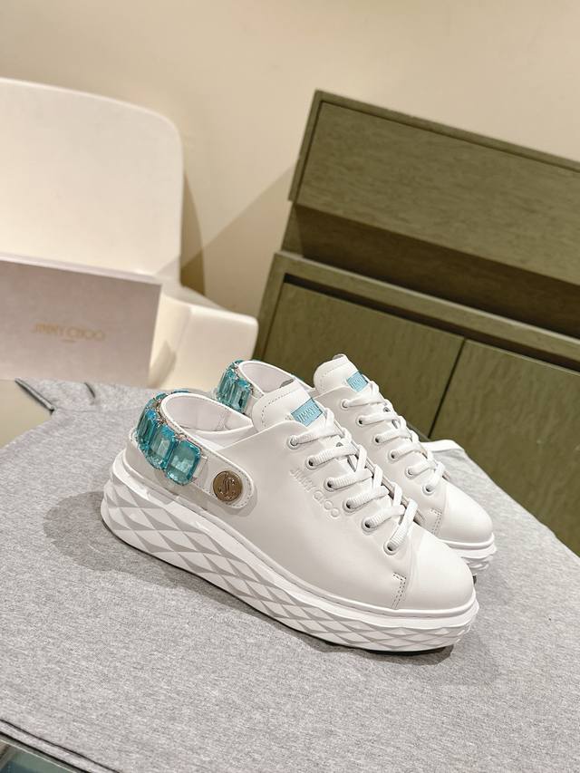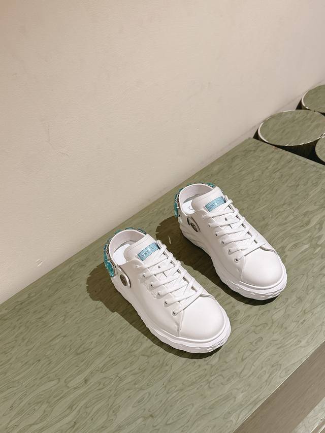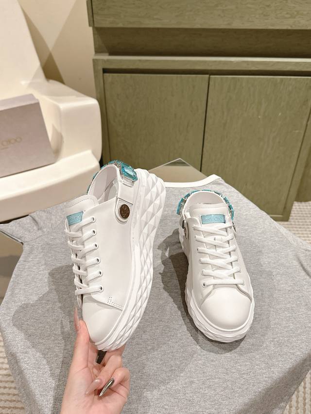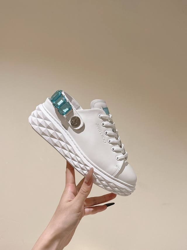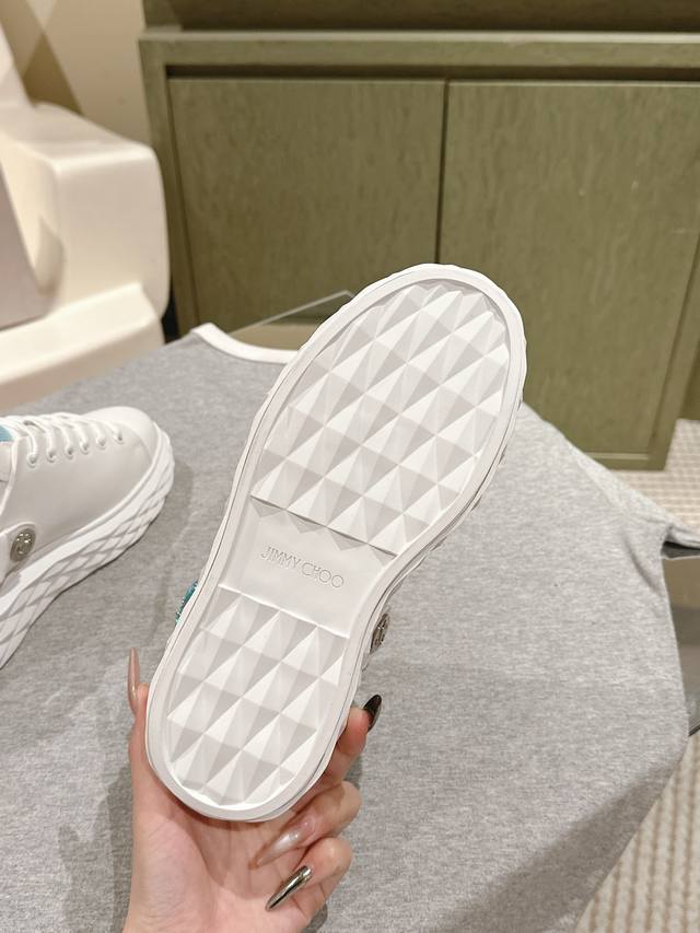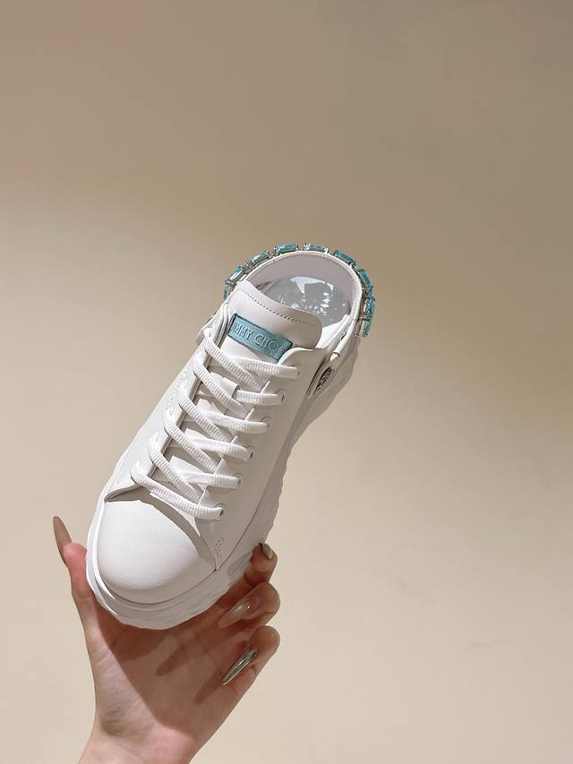 Jimmy Choo*'s latest casual shoes, a flagship collection! Shopping-level! Made from original cowhide with a hot-drilled tangerine finish, paired with JC-inspired pearl embroidery and rhinestone detailing, this is a truly unique combination! Super comfortable! Lined with premium sheepskin!