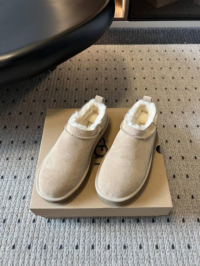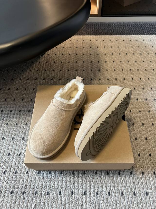 Low-top, fluffy collar, soft and comfortable around the ankle. The thick sole design makes you look taller and your legs longer. These Ugg slip-on fluffy boots have a cute round toe design and can be paired with pants or skirts. Most importantly, they are "lazy friendly"