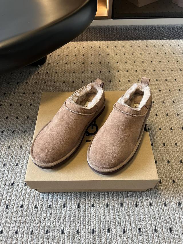 Low-top, fluffy collar, soft and comfortable around the ankle. The thick sole design makes you look taller and your legs longer. These Ugg slip-on fluffy boots have a cute round toe design and can be paired with pants or skirts. Most importantly, they are "lazy friendly"