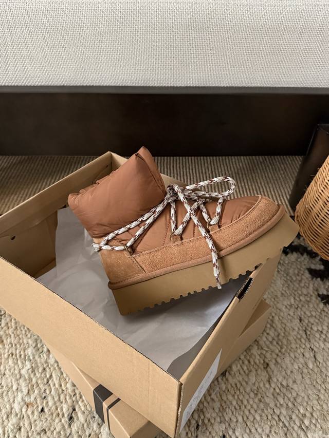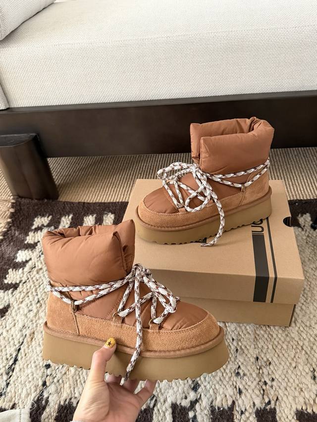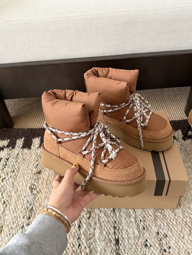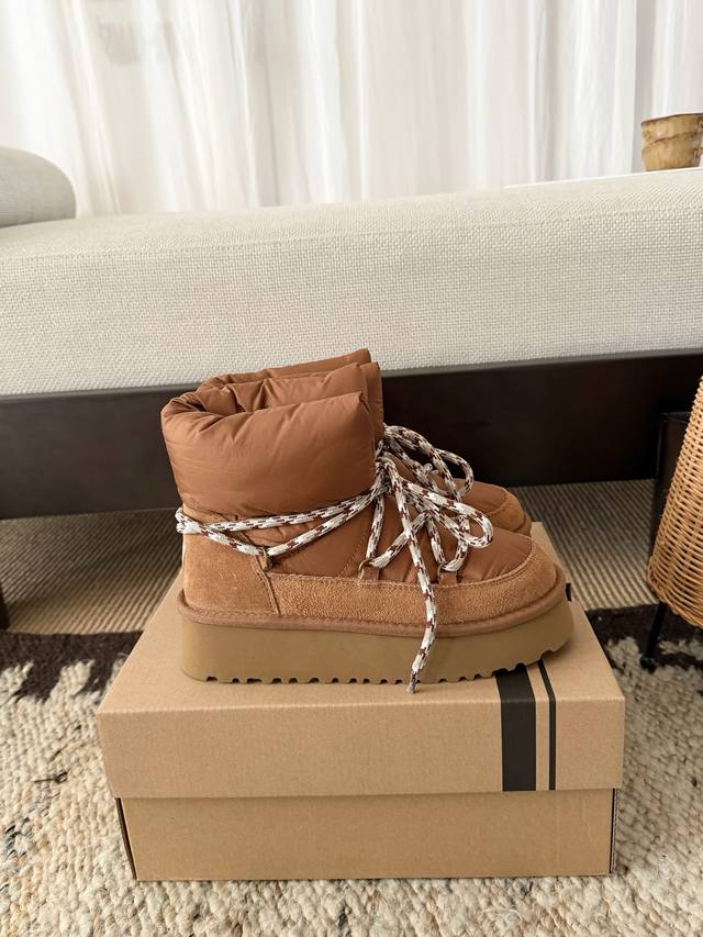 Ug . Korean Style Down Lace-up Bread Boots DDD Korean Chic Ins Blogger's Style DDD Finally Released After a Month of Anticipation DDD Chubby bread lace-up design, cute and adorable DDD Down fabric and inner fur lining for double warmth DDD Size: 35 40 DDD