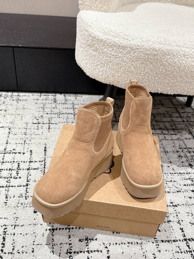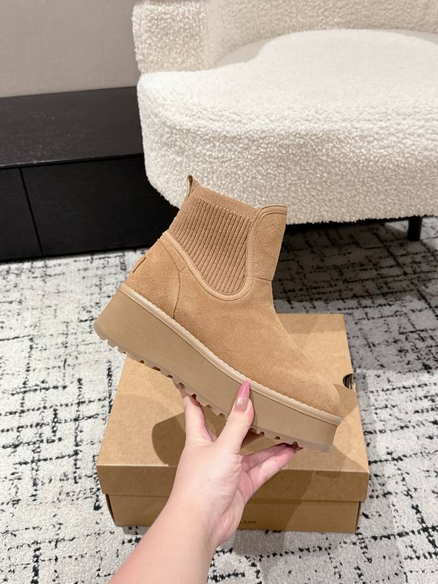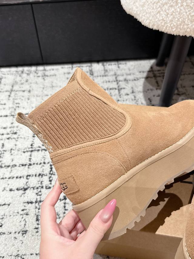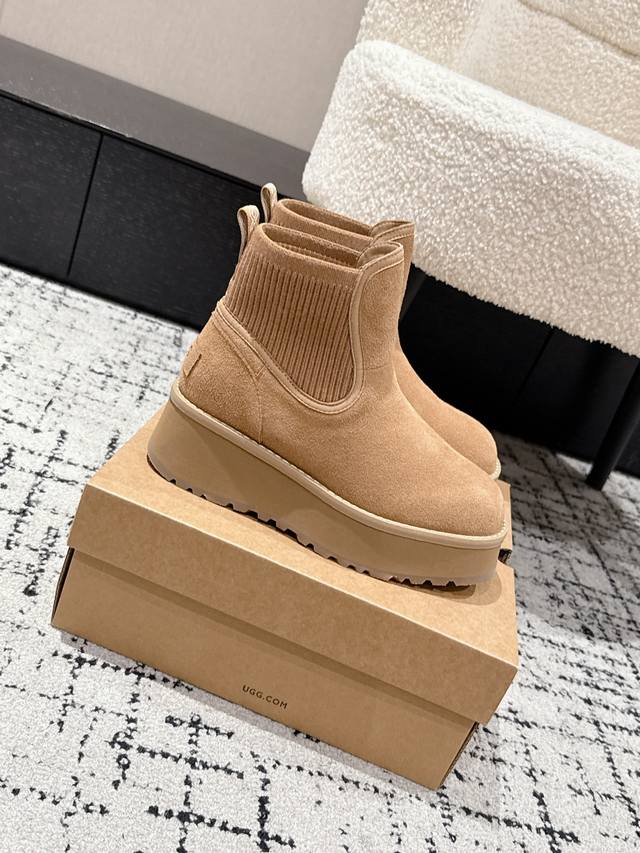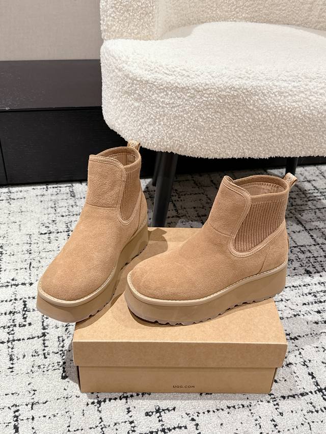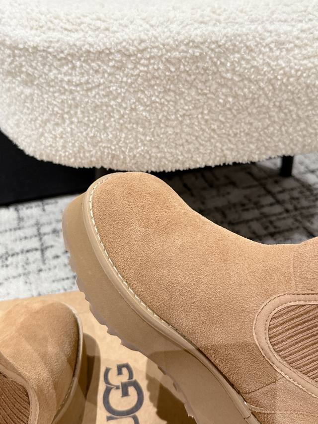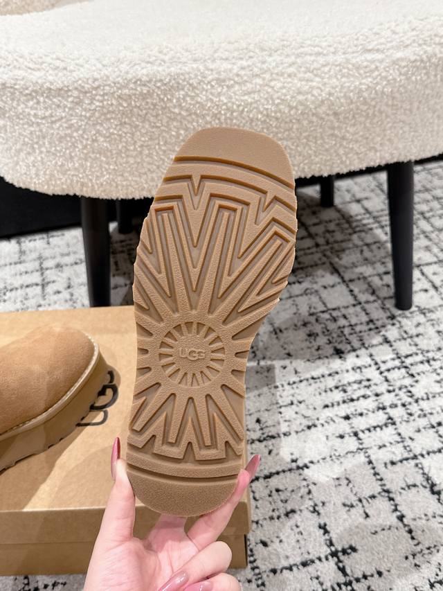 can't resist giving a sneak peek. Seeing all sorts of versions flooding the market, our exclusive custom-made color-matched molded combination sole is about to ship. This Ugg platform short ankle boot is not made of genuine leather and fur; the material is cow wool laminated with woven wool. As the name suggests, almost all Ugg boots on the market are made of genuine leather and fur because it's easier to produce in large quantities and at a lower cost, and it's faster to make! However, the downside is that the shoes are very easy to deform and lose their shape. If worn every day, they will be severely deformed in less than a week. The genuine Ugg boots are made using the methods used for fashion shoes. The cow wool laminated with wool is used for the entire process of covering the boot, and then the shoe is covered. This involves many processes, including adding a toe cap, then shaping fabric, and then going through a "bun machine" to shape the upper. These detailed processes make the finished shoe less prone to deformation! Our Uggs are made with materials and manufactured using the same processes as genuine products. Feel free to compare them. Size: 35-40.