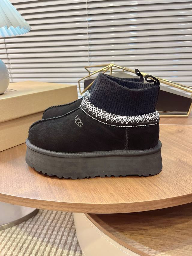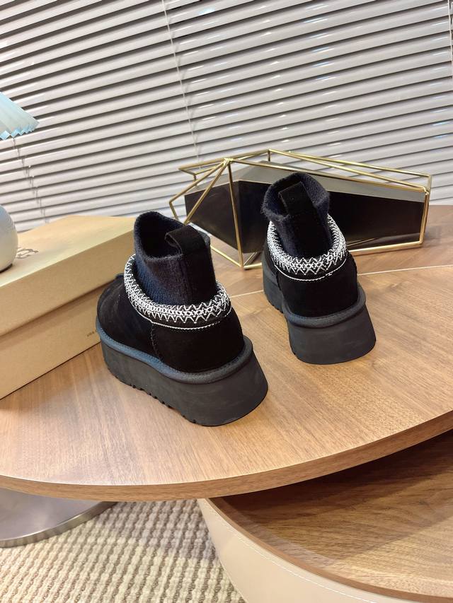 Ugg 25 New Ethnic Style Snow Boots with Sock-like Liner. The liner is made of imported smooth cowhide suede, with a Longfeng leather lining. The sole is 4.5cm high, with a foamed outsole for lightweight, non-slip grip. Sizes 35-40. 4 colors available.