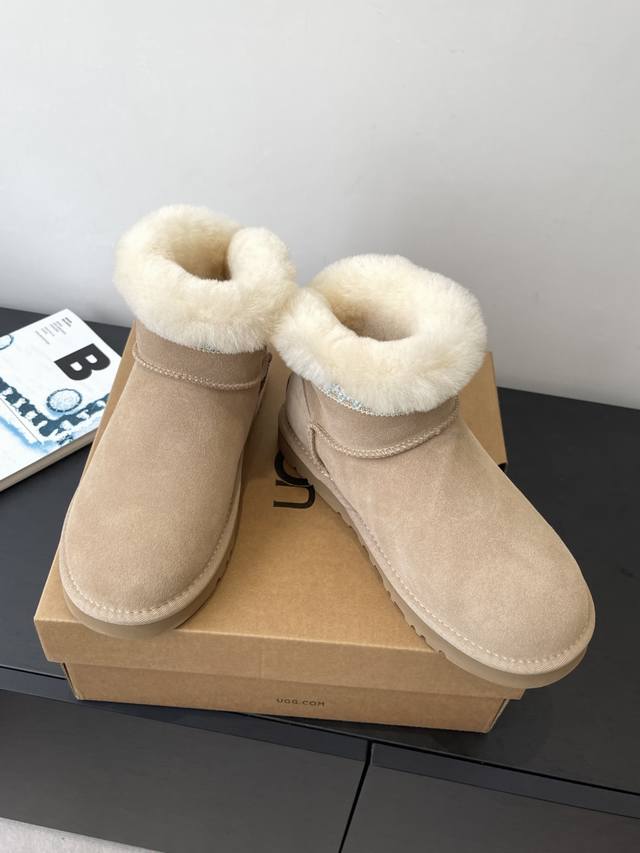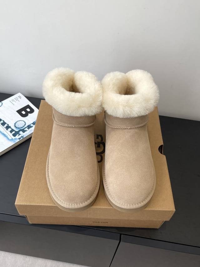 Ugg 25Ss Autumn/Winter Hot Selling Platform Snow Boots Series DDD Simple partition design, speckled outsole, silk and curly fur upper, a must-have for autumn and winter. Pairs well with any pants or skirts, very comfortable and stylish. DDD Original custom-made suede upper, original custom-made wool lining, original custom-made wool insole, original molded wear-resistant sole. DDD Sizes: 35-40, 40 custom-made. DDD