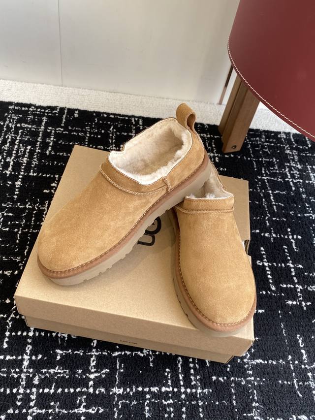Ugg 25Ss Autumn/Winter Thin-Soled Snow Boots - A trendy item that even celebrities are scrambling to wear! Zhou Dongyu's boots feature a high-low neckline design that accentuates her figure, making her look like a long-legged beauty. Material: Waterproof cow suede with genuine wool lining. Size: #35-40, 41 (custom made).