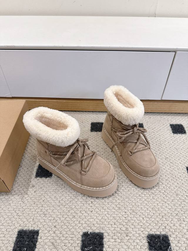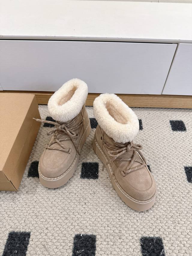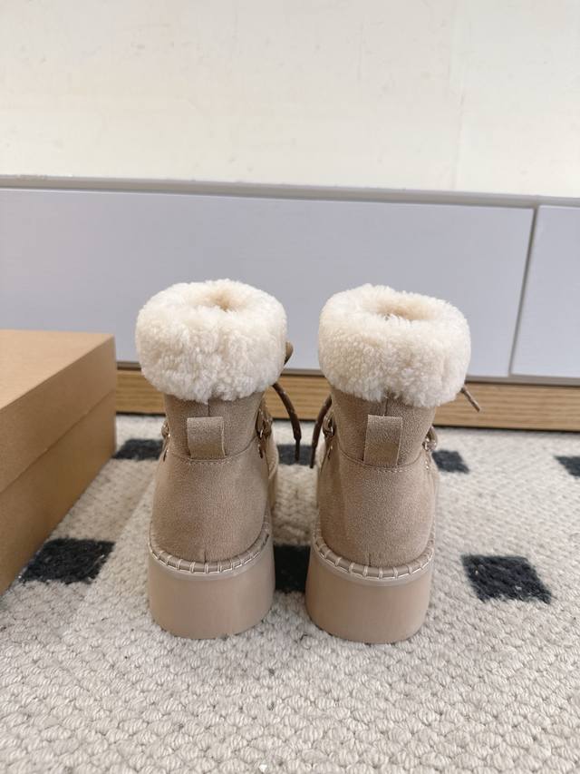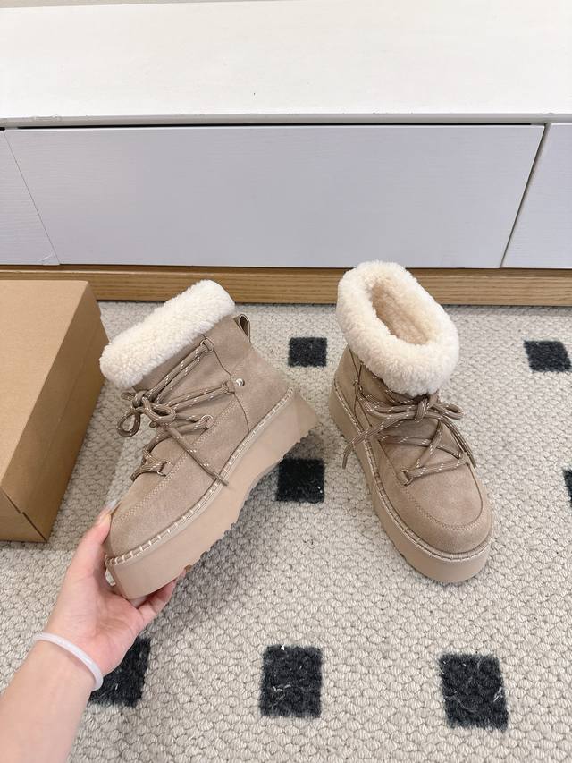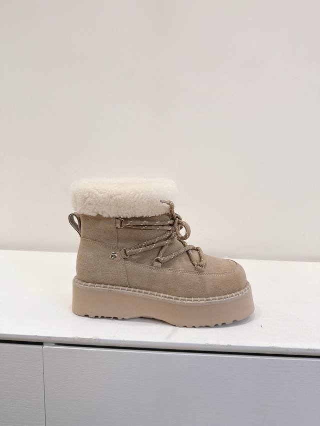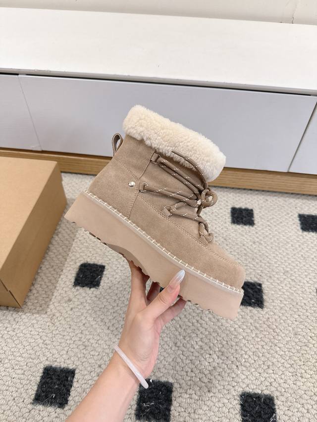 Ugg 25Wf New Lace-up Thick-soled Snow Boots DDD These snow boots break the stereotype of winter footwear, fusing warmth and style into one and redefining the comfort and aesthetics of cold-season wear DDD The core sheepskin material continues the brand's classic essence DDD The delicate wool tightly wraps the feet, making you feel like you're walking barefoot among sheep. Constant temperature and breathability automatically adjust the internal environment of the boot, ensuring both warmth and coolness DDD The innovative thick-soled design is a blessing for petite people DDD The lightweight material has been optimized through tens of thousands of tests DDD It achieves a natural height increase effect while maintaining cushioning and lightness when walking DDD You can walk around without any burden DDD From a warm tool to a fashionable must-have DDD Let your winter steps be both gently wrapped DDD and stylishly sharp DDD Sizes: 35-39 40 Custom made DDD