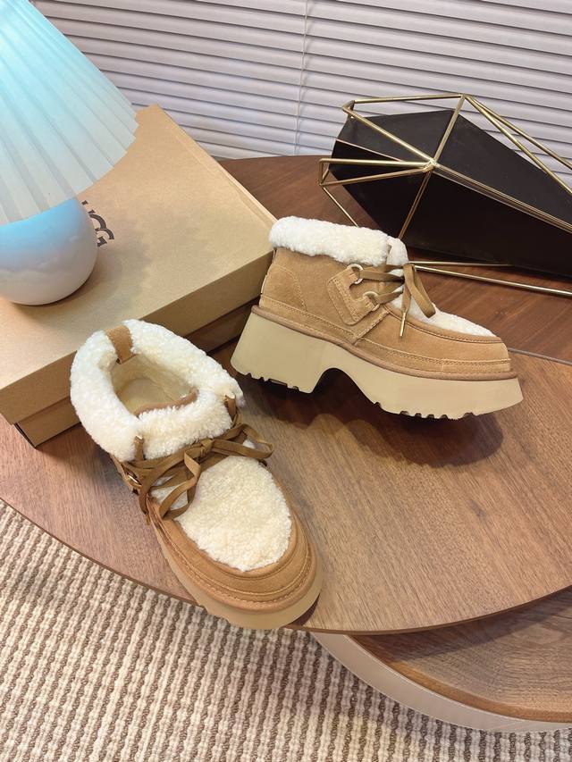 Ugg autumn and winter new thick-soled wedge-heeled mermaid lace-up boots