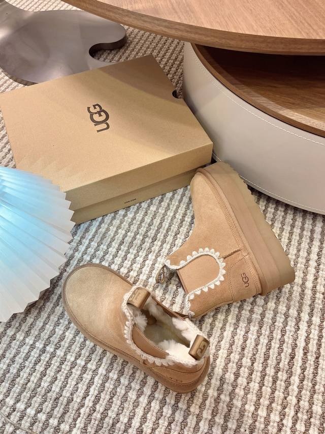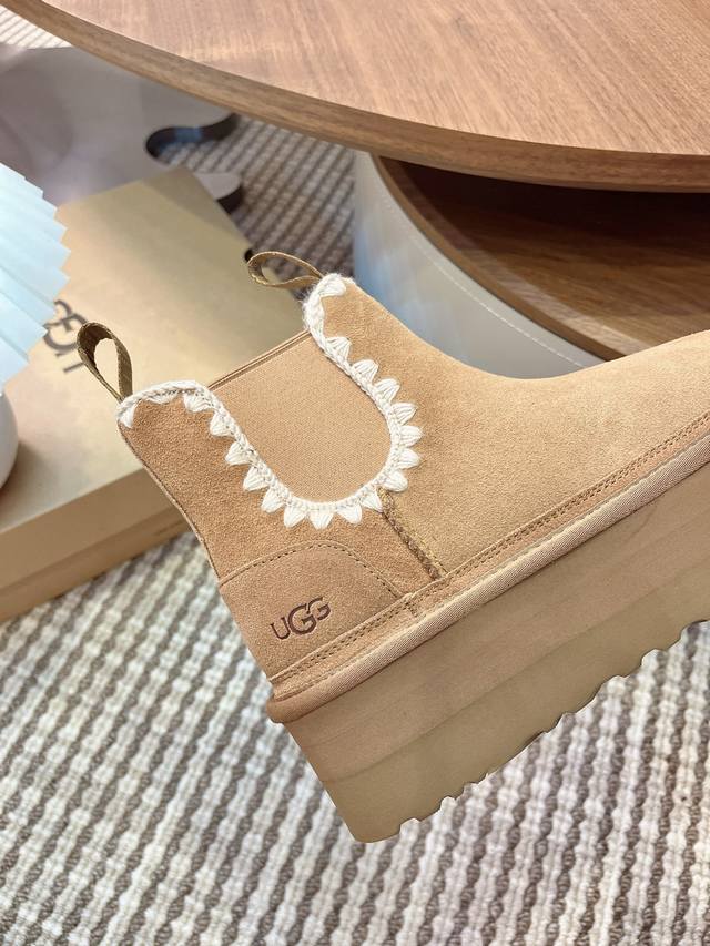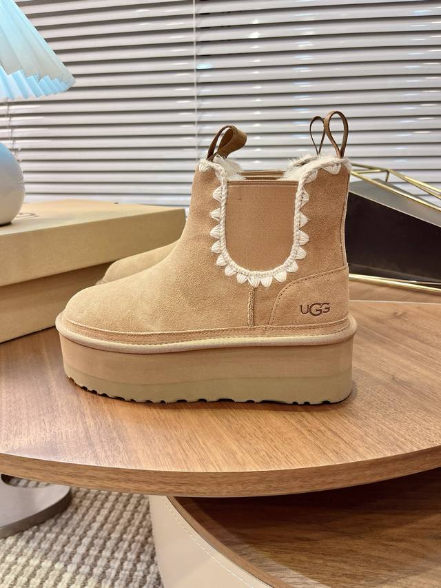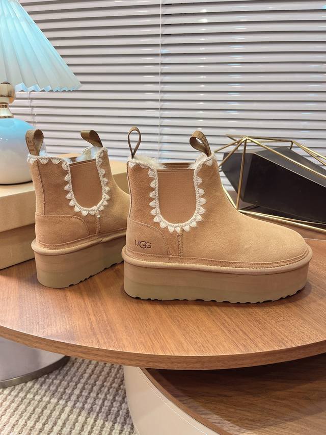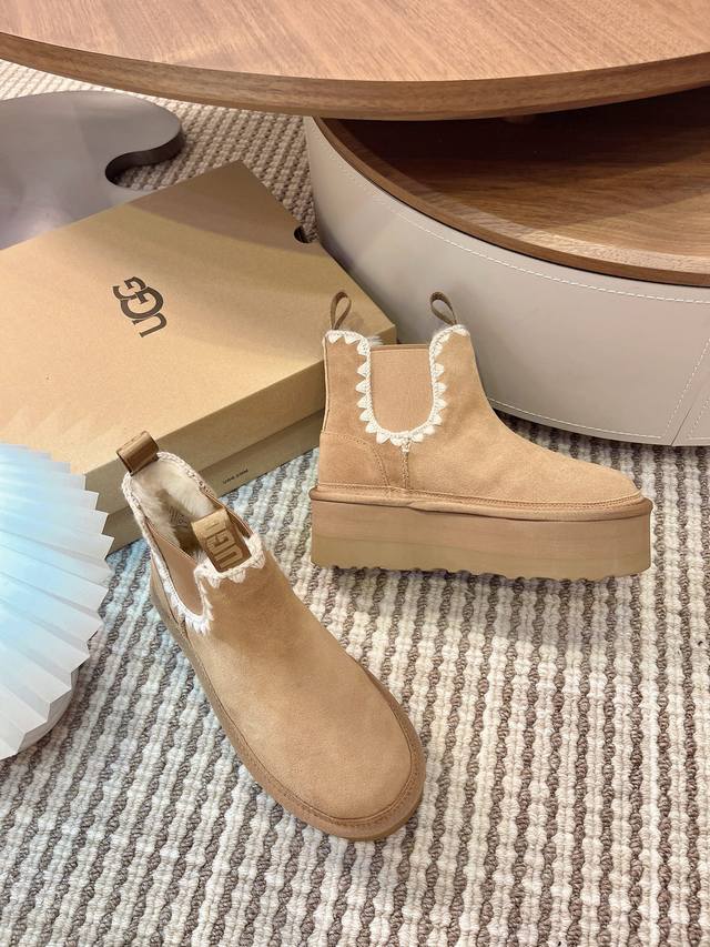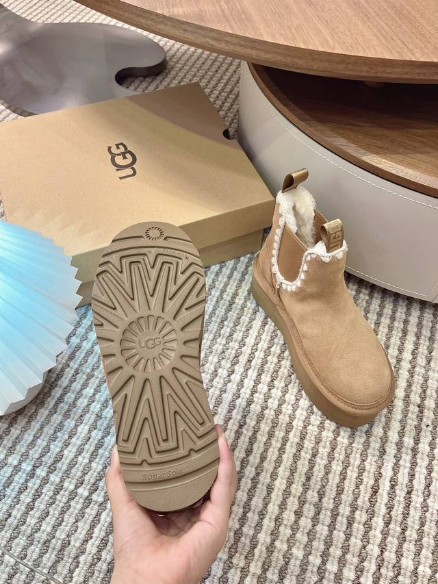 Ugg Autumn/Winter New Women's Casual Comfortable Thick-Soled Chelsea Elastic Band Furry Shoes, Fashionable Boots, Celebrity Style,